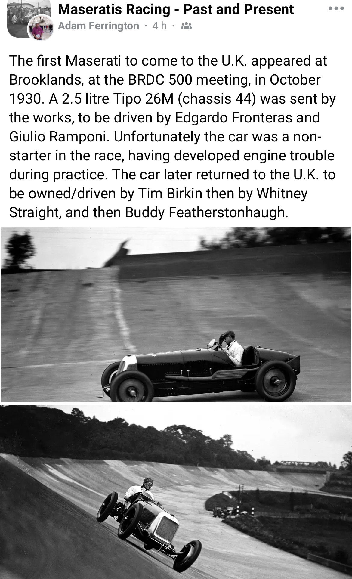 C'est #2514, la première Maserati à toucher le sol anglais, dès octobre 1930. Elle deviendra célèbre aux mains de Whitney Straight.
