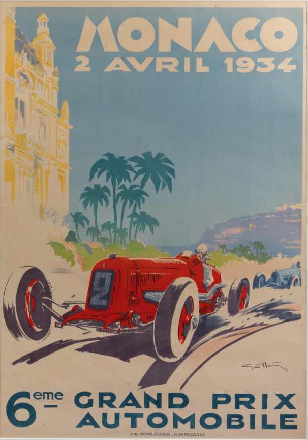Un poster original du Grand Prix de Monaco 1934 et sa Maserati 8C s'est vendu £11 520 frais inclus.
