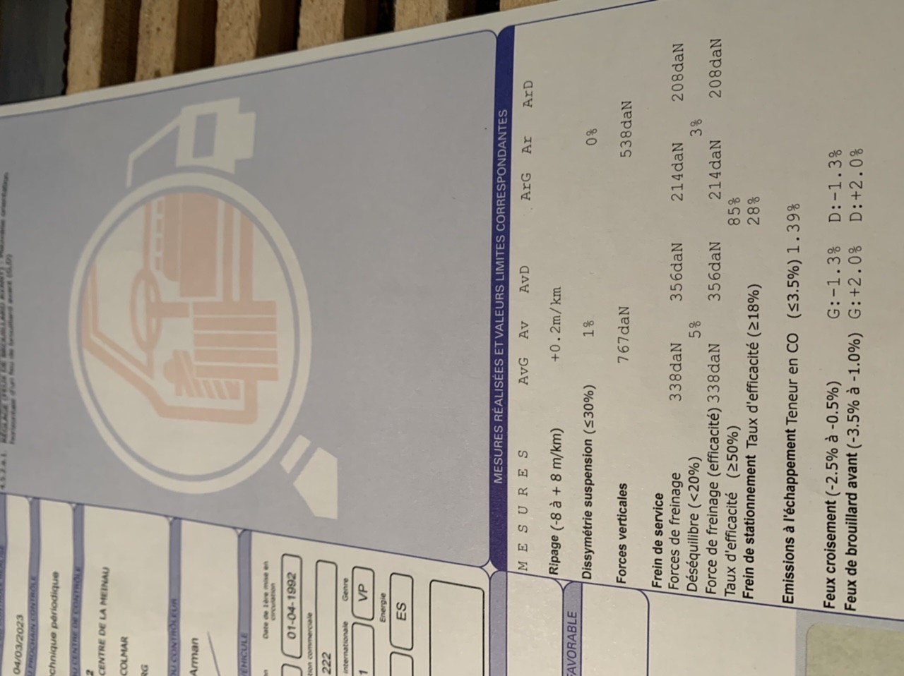 Contrôle technique 222 4v....