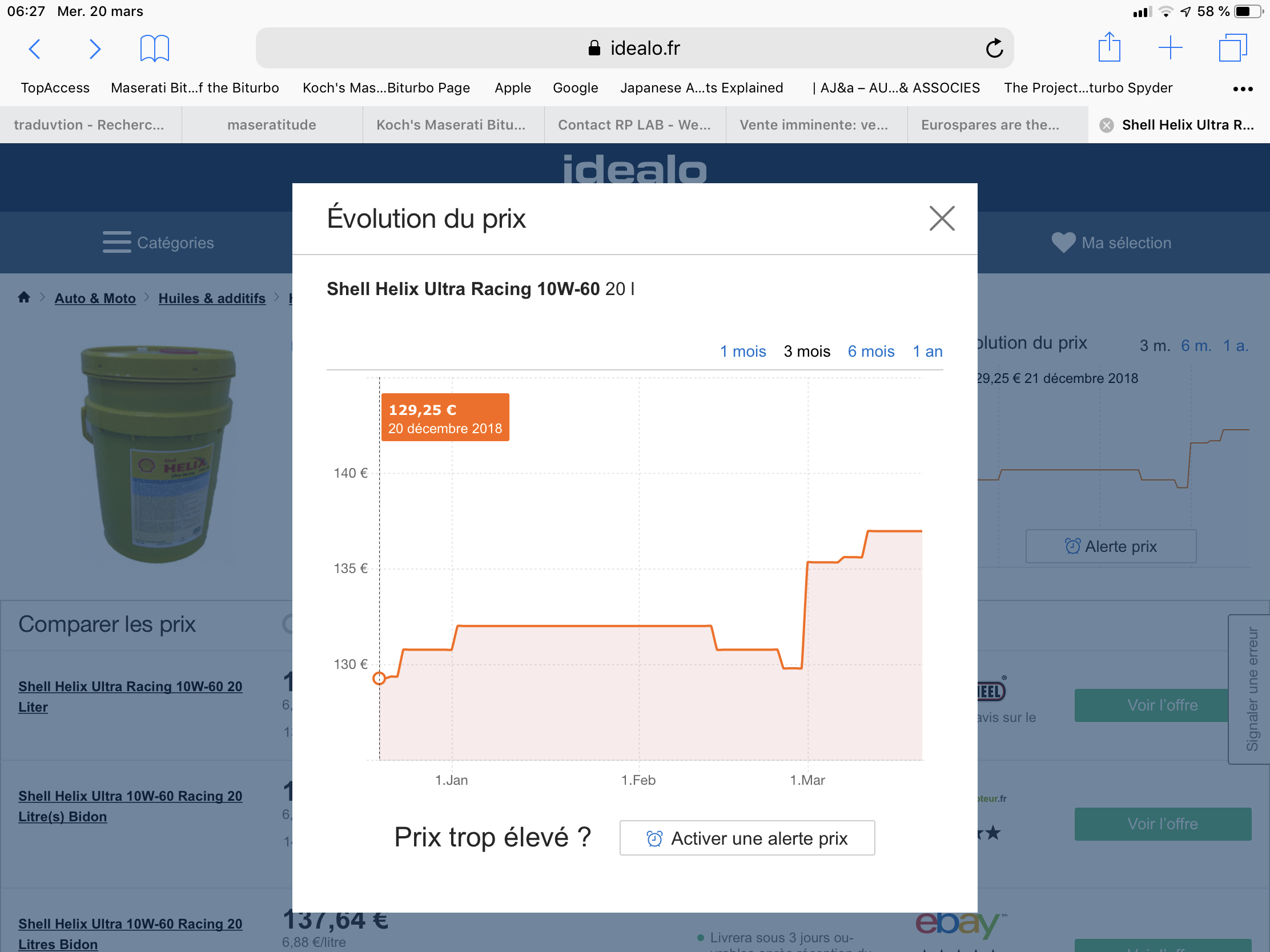 Selenia Racing en 5l à 43,35€ et même 37,95 par pack de 4 (pour les ceuss qui auraient plusieurs tridents).