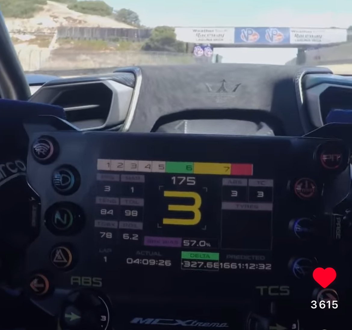 La MC20 Xtrema a tourné à Laguna Seca (tout près de Monterey où elle était exposée hier) ce week-end, avec rien moins qu’Andrea Bertolini (double champion sur MC12) à son volant :