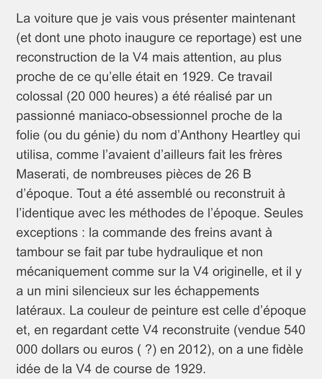 La V4, reconstruction par Anthony Hartley avec très grande minutie, est en revente par Bonhams :