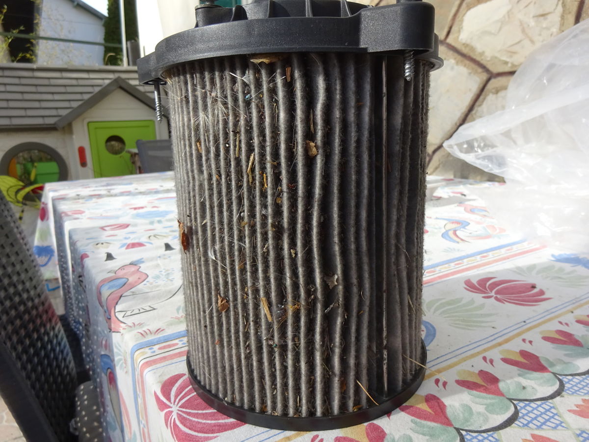 Cache moteur enlevé Débrancher le connecteur du débitmètre facile Avec une douille de 4mm allen défaire le débitmètre et son collier clé à pipe de 7mm le sortir et l'enlever avec une clé à pipe de 7mm enlever le filtre à air , il faut un peu triturer pour le sortir car la durite gêne un peu . Le mieux c'est de l'enlevée mais le 2è collier n'est pas récupérable donc comme j'en avais pas sous la main je m'en suis sorti comme ça ; je vais le changer par la suite car pour sortir le filtre à huile qui se trouve dessous c'est plus simple ( Vidange Samedi ) un petit coup de nettoyage dans le logement et on remonte pas bien compliqué il faut une douille de7mm femelle un embout allen 4mm un petit cliquet avec rallonges éventuellement et un filtre neuf bien sur