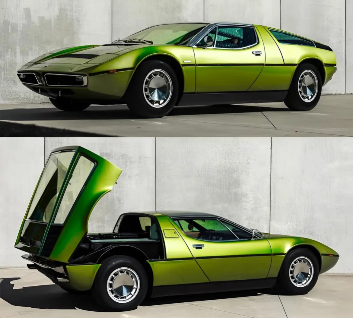 Tout bien rangé, les V8 à gauche (Khamsin, Bora, Indy) et les V6 à droite (Quattroporte II Bertone dessinée par Gandini et Merak). Quelle gamme magnifique !