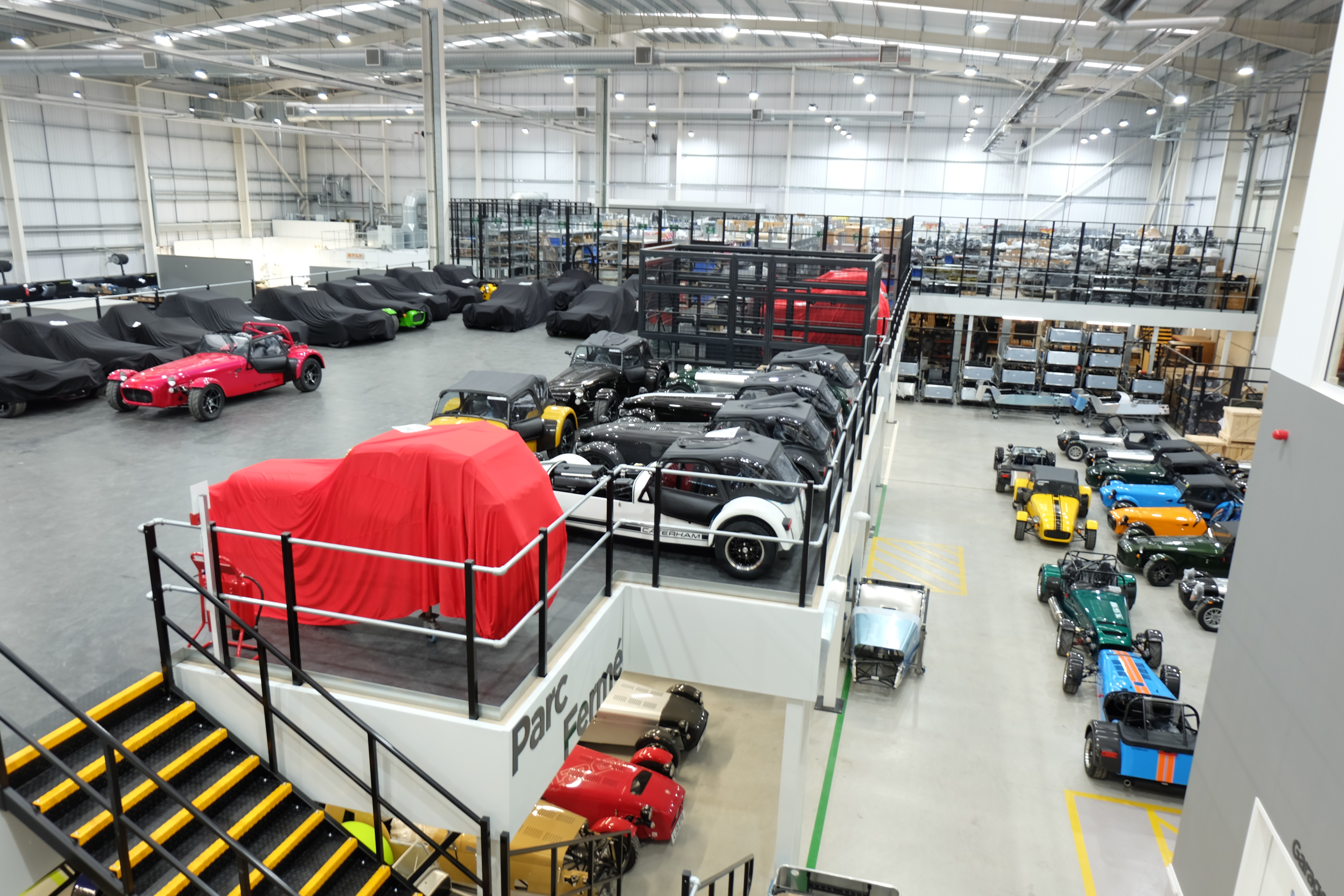 Etape 1 : visite de l'usine Caterham flambant neuve, ou une plongée dans un arc en ciel de machines diaboliques