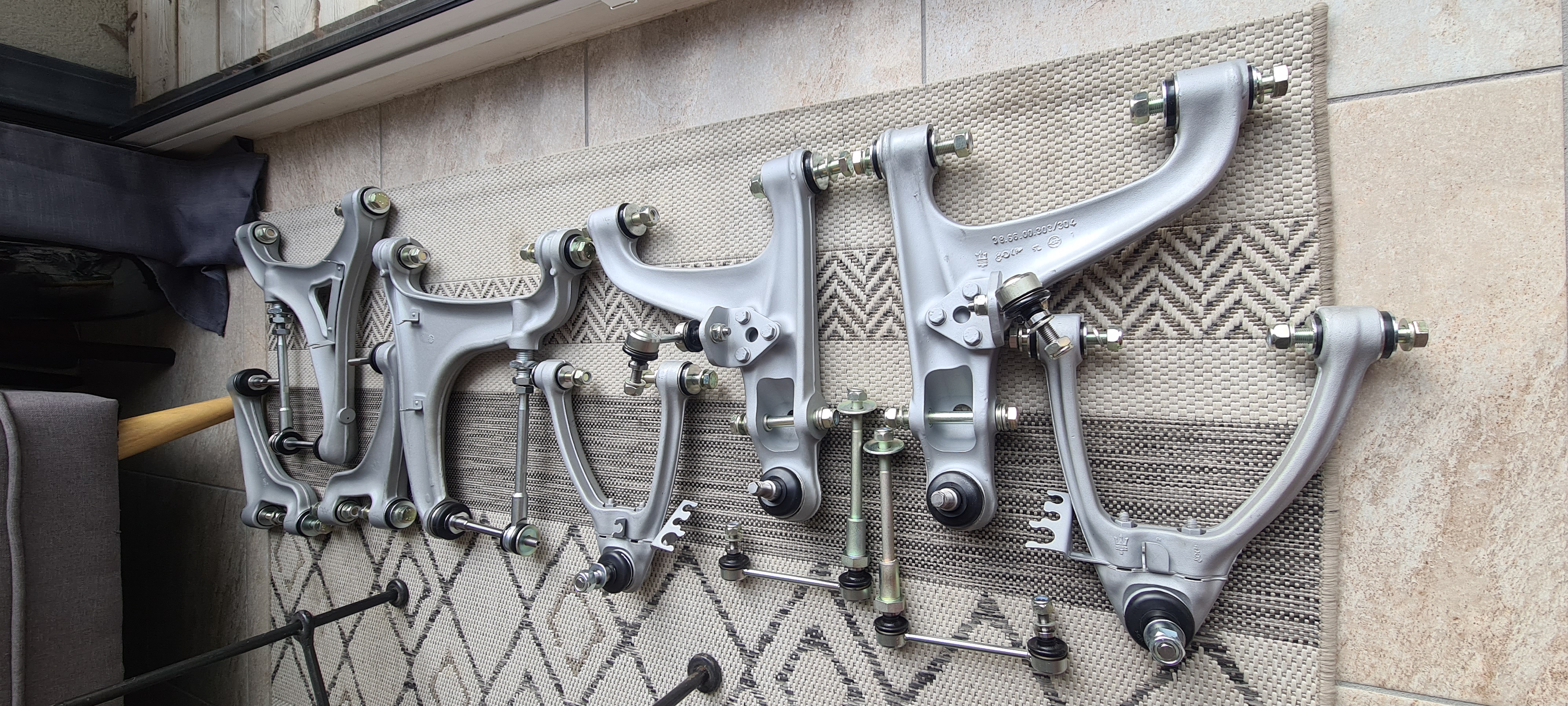 C'est beau quand c'est tout propre tout neuf : Triangle / silentblock / rotule / biellette de barre stab/ visserie j'ai même sablé et refait zingué les calles des triangles !!