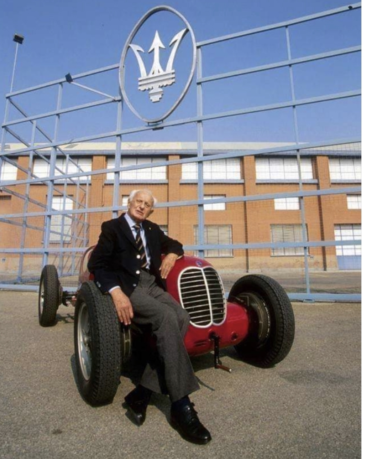Luigi Villoresi avec la 6CM, à peu près où est le show room actuellement !