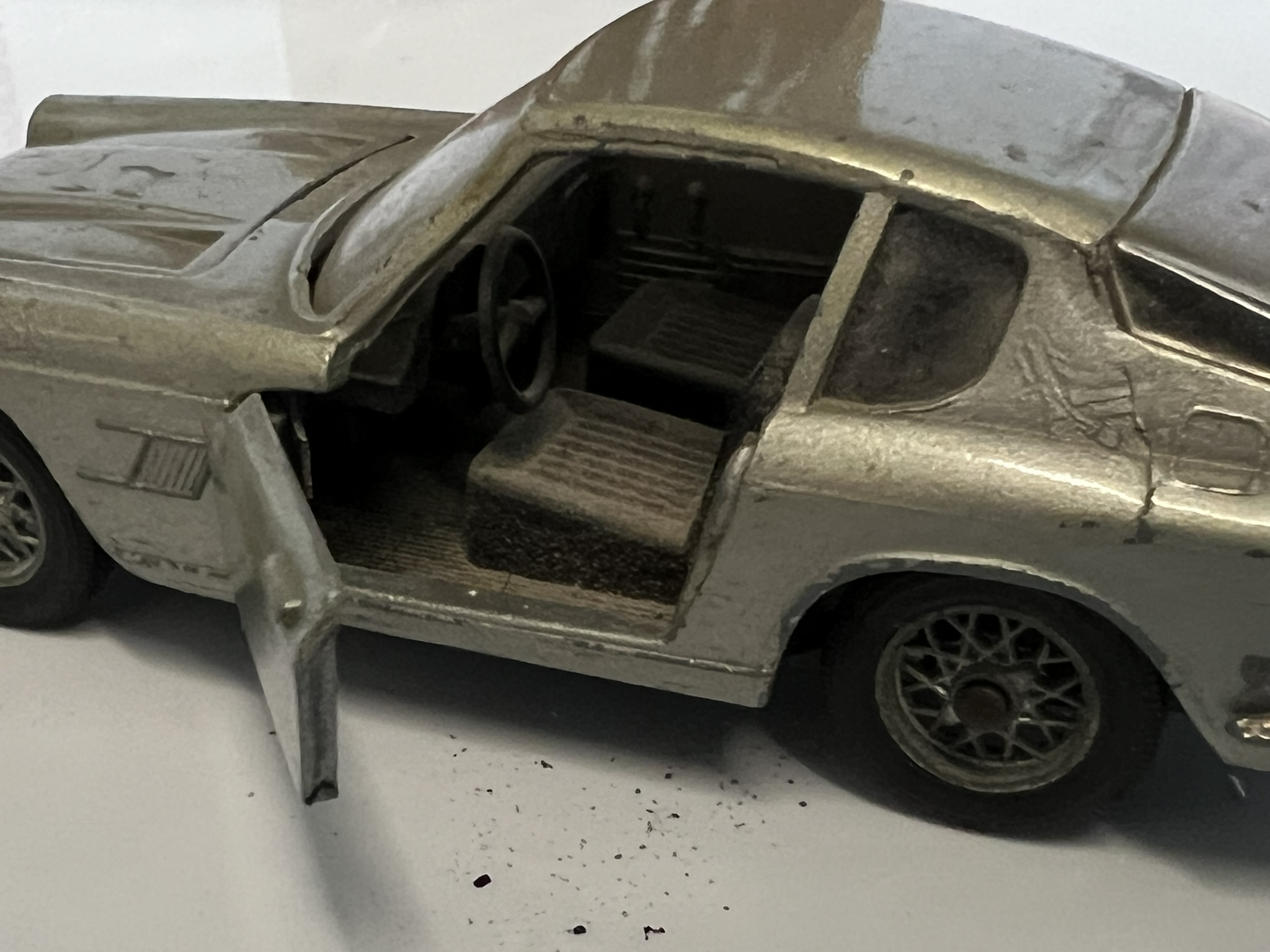Il a quelques miniatures de Mistral en sa possession mais aucune n'a la même configuration que la sienne : gris argent/ intérieur noir/ phares jaunes.