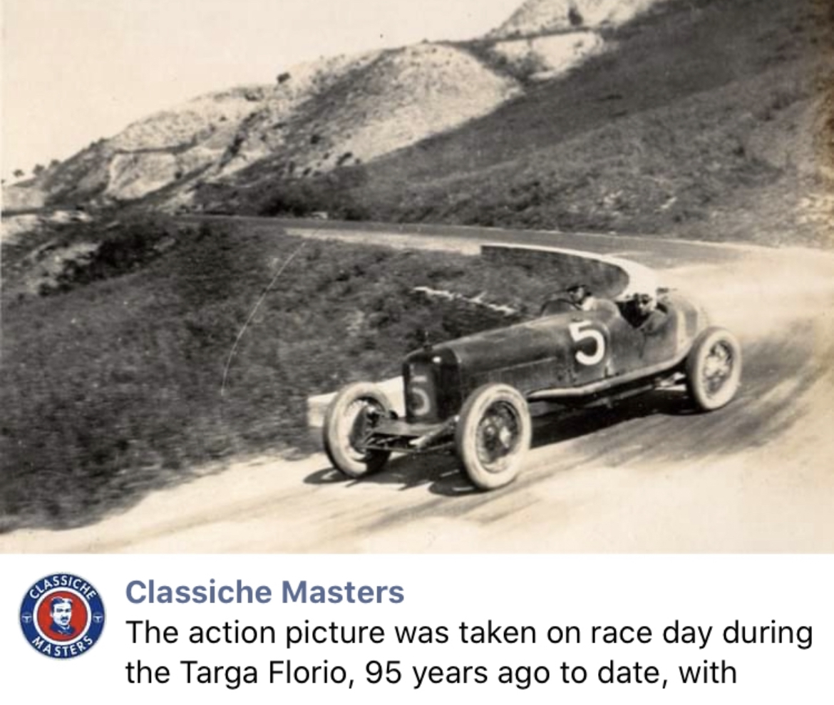La première course de la première Maserati, la Tipo 26, avec Alfieri Maserati au volant et Guerino Bertocchi en mecanicien embarqué. Victoire en classe 1500 à la Targa Florio 1926 :
