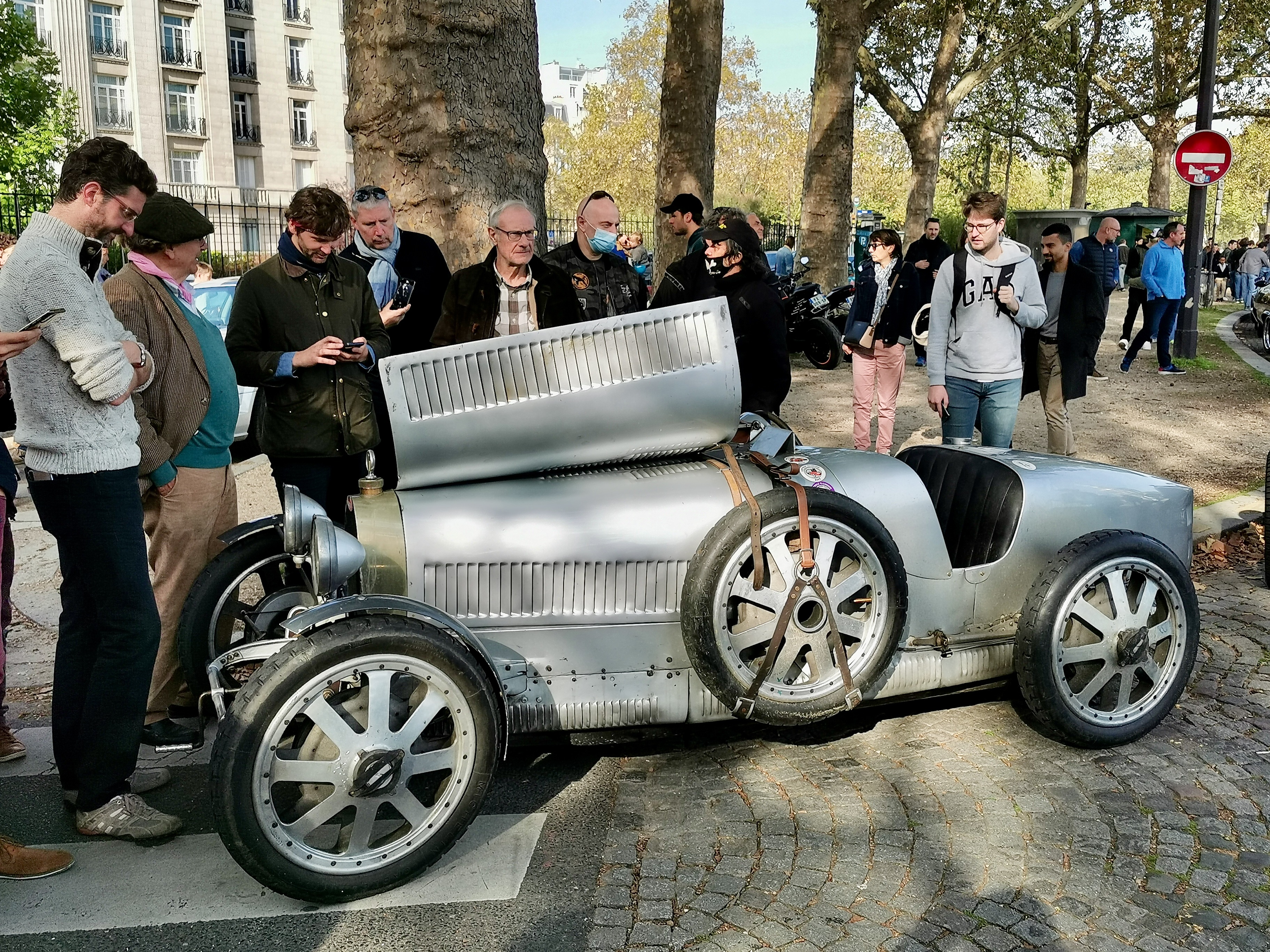 Ici le jeune homme assis derrière pourrait être le pilote parisien, mais les ailettes au dessus de la plaque sont différentes.