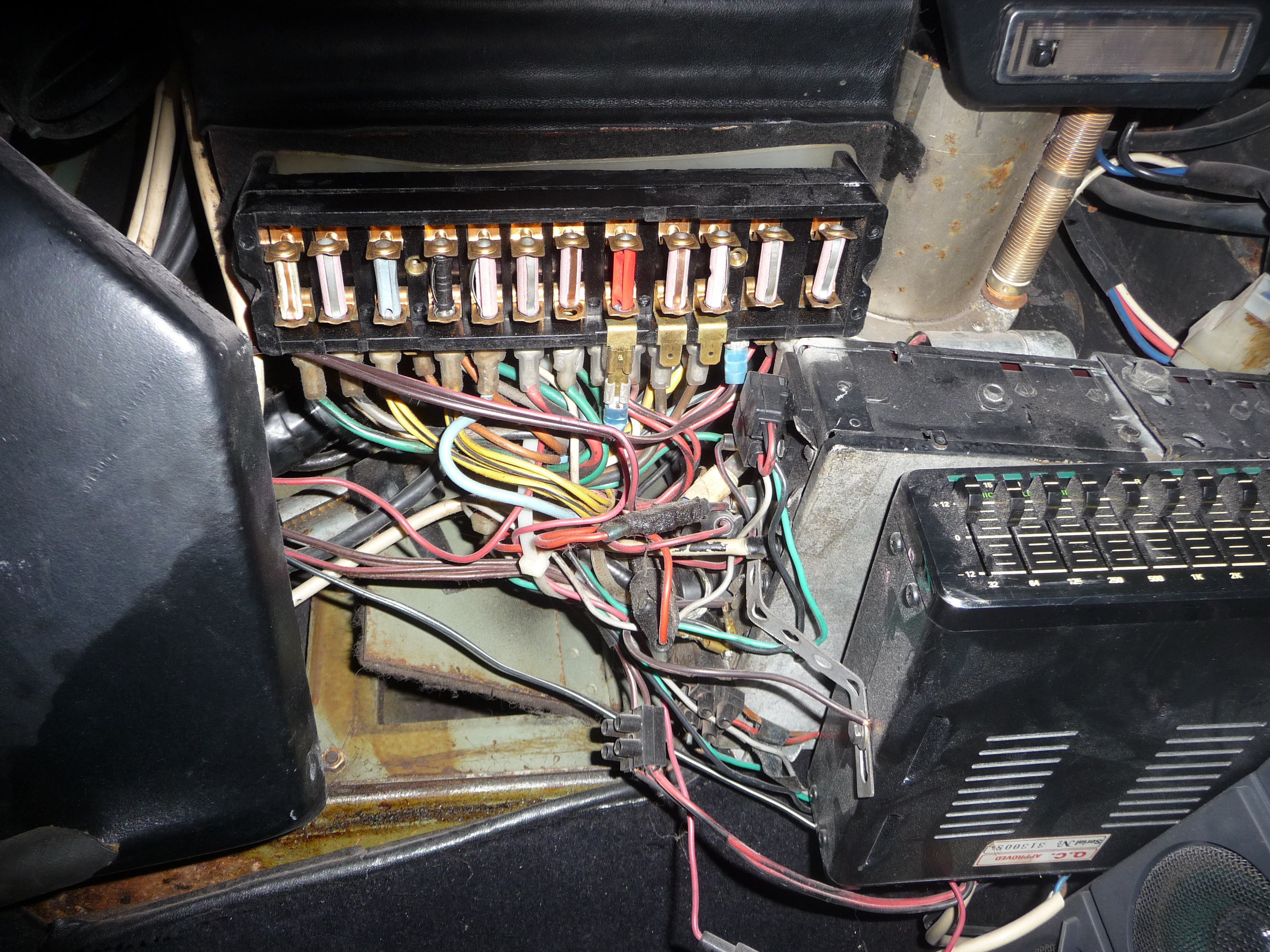 Il faut surtout remplacer le support des fusibles, eventuellement en utilisant des fusibles de plus gros format pour certains (celui de la clim). Les fusibles habituels que j'ai utilise vont jusqu'a 30A mais j'ai constate plusieurs fois dans diverses voitures qu'ils chauffent trop et font fondre leur support, il faudrait les remplacer par le format au-dessus qui va jusqu'a 70A (voir +), ceux qu'on a sur les QP/GT pour les ventilos du moteur.