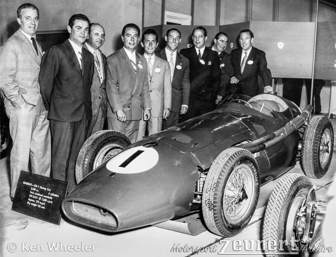 Ci-dessous Jean-Behra est le quatrième à partir de la gauche, Stirling Moss le cinquième :