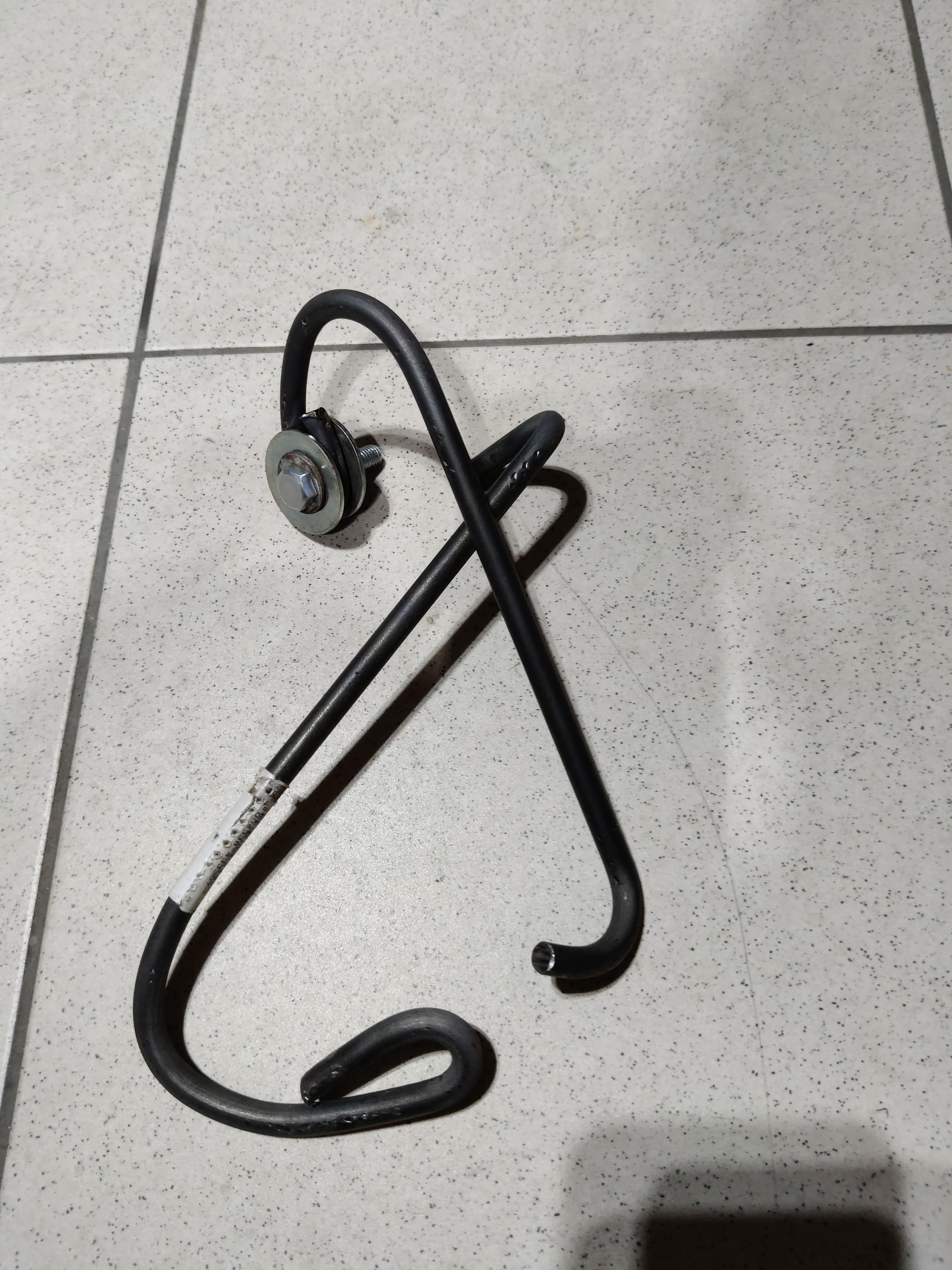 Fixé au châssis avec un boulon M10. En tout cas, c'est super solide, bien la galère de le plier, même en le chauffant à la torche.