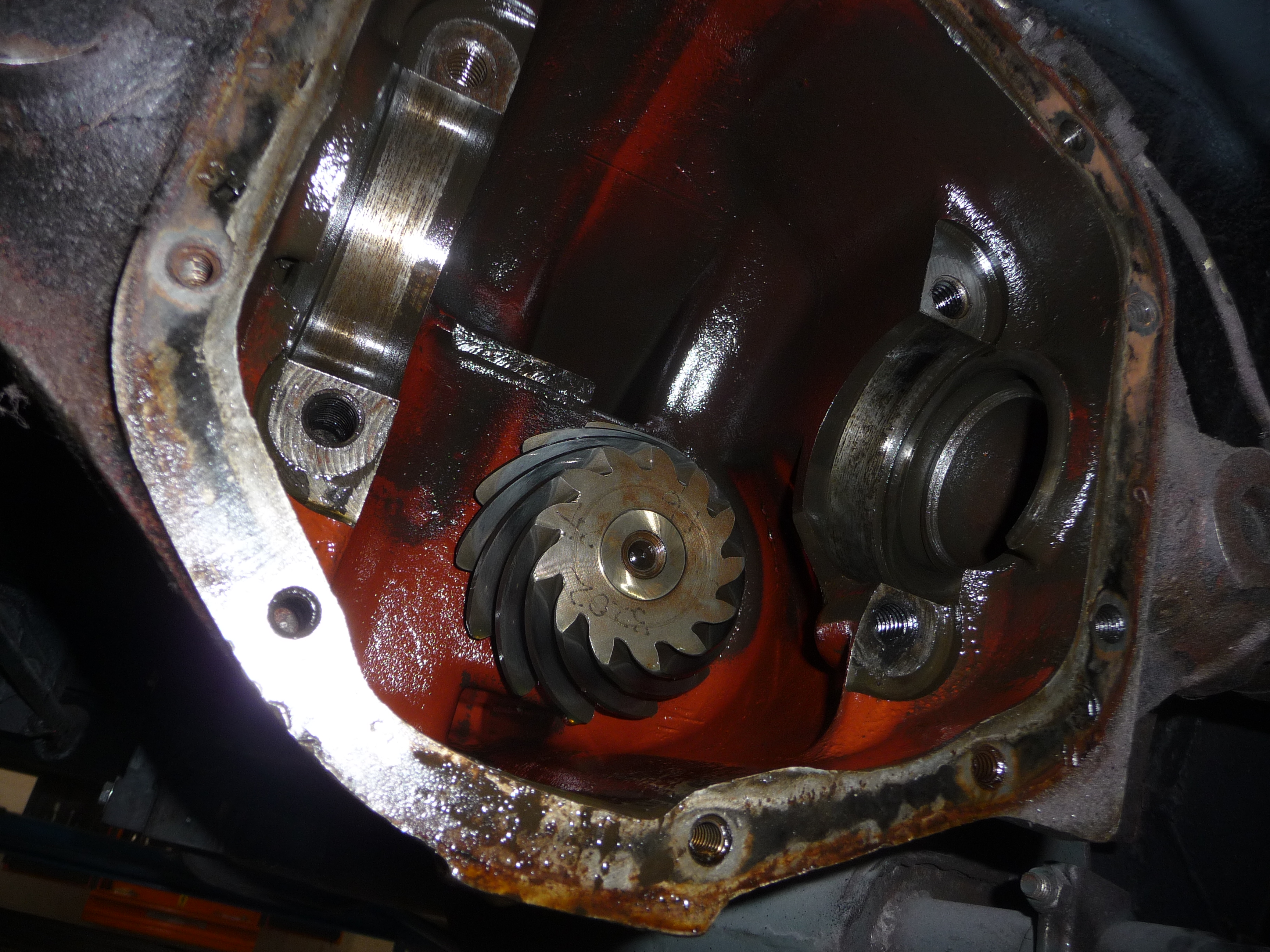En plus le roulement et le joint d'entrée d'arbre sont également en mauvais état (raison de la fuite qui a justifié le démontage initial du pont). Mais c'est maintenant mineur par rapport au reste...