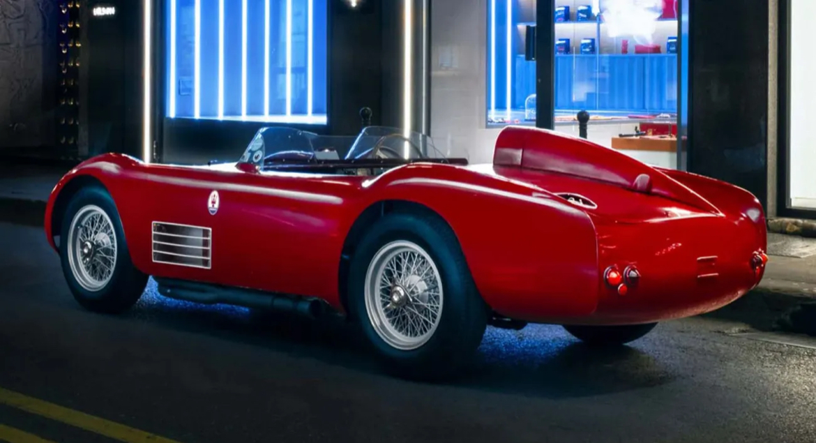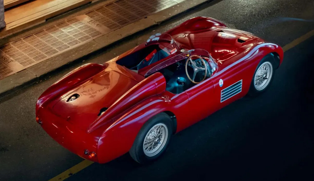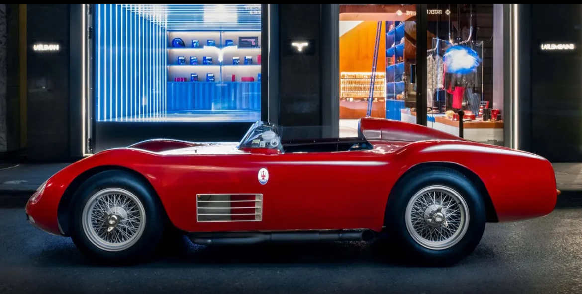Maserati était à l’honneur lors de la Milan Design Week qui s’est tenue cette semaine. Le Grecale Giorgetti Édition y était présenté ainsi que cette belle barquette 200S de 1956 sur carrosserie de 150S avec les petites dérives sur les ailes arrière :