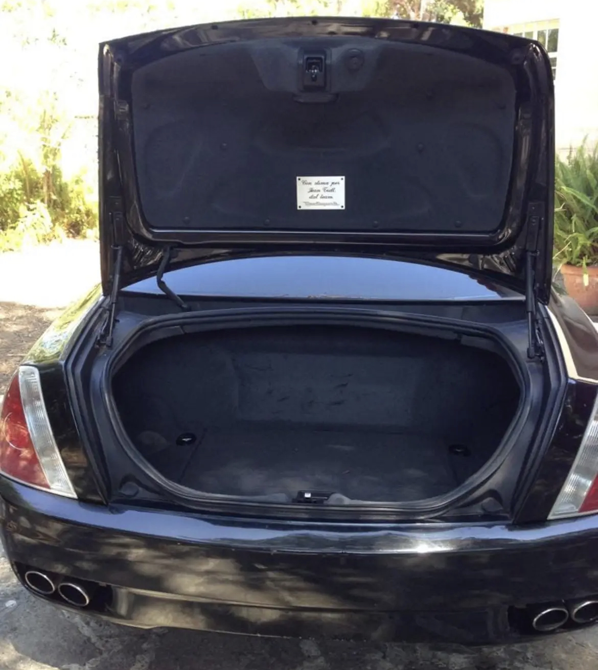 Qui a-t-il d’écrit à l’envers du couvercle de malle de cette Quattroporte V ?