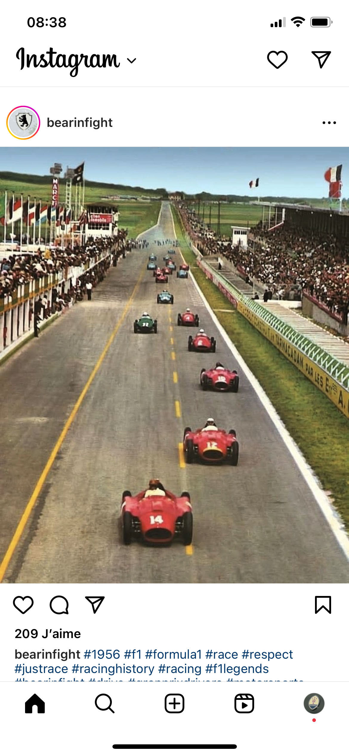 Salve Cedfred, génial ! Je pense qu’on est en 1956 car il n’y a pas de Mercedes (retirées à la fin 1955) et que l’on a trois Ferrari-Lancia D50 en tête avec leurs réservoirs sur les côtés.