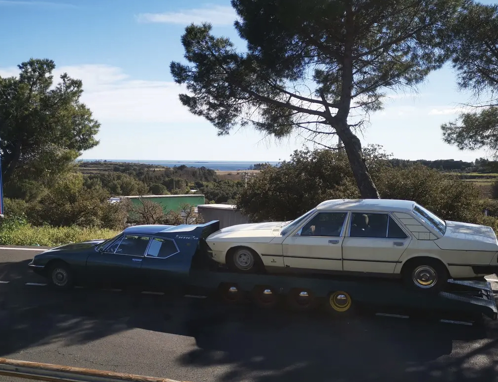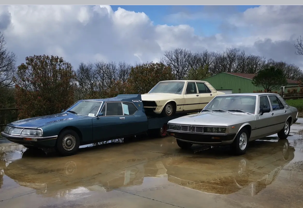 Jean-Michel Gallet (grand restaurateur de SM avec plus de 250 moteurs refaits et constructeur de la SM2) est allé chercher avec la SM plateau Tissier une Quattroporte II Bertone (qui est une SM 4 portes) pour la ramener chez lui et la restaurer :