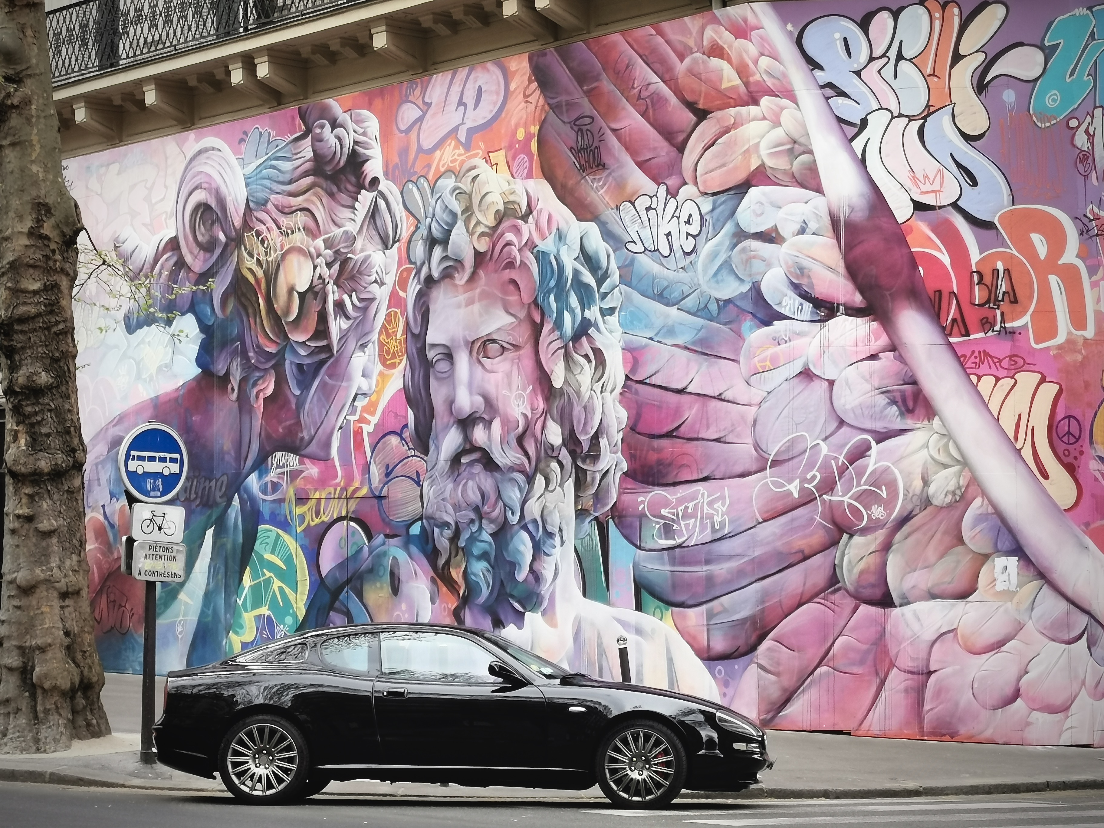 Le duo de graffeurs espagnols PichiAvo réalise une oeuvre de 180 m2 sur une façade du boulevard Saint-Michel à Paris.BOF :o ;)