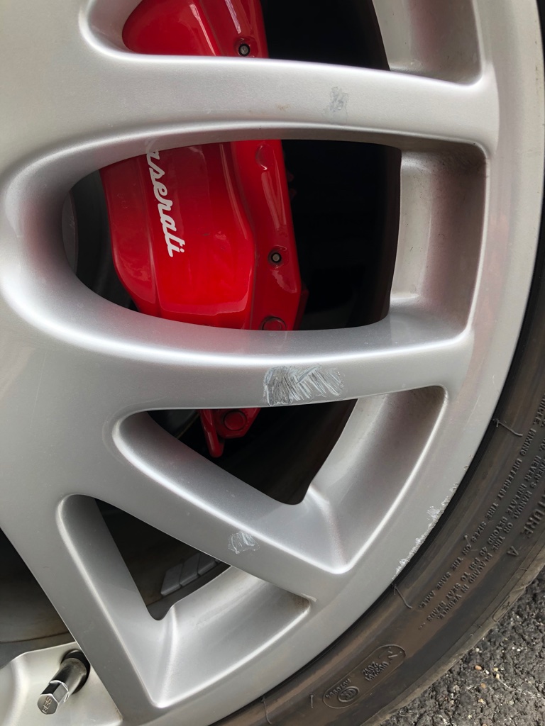 Comme souvent sur nos bolides, les jantes (plus souvent à l'avant) sont plus larges au niveau du moyeu que les pneus, et elles se retrouvent donc très vulnérables. Petit passage obligatoire chez le carrossier :