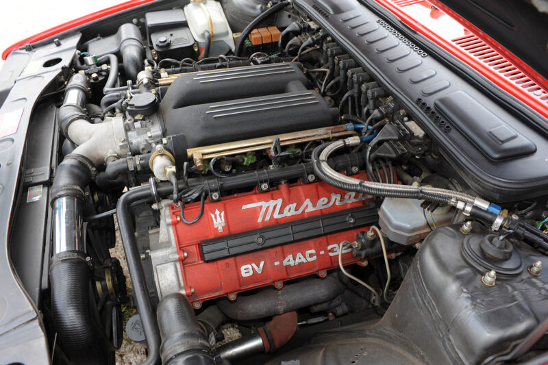 Pour motoriser sa bête, Alejandro De Tomaso n'avait pas lésiné malgré ses finances délicates et avait choisi de développer un V8 Biturbo, rien de moins ! La volonté de prestige était manifeste.