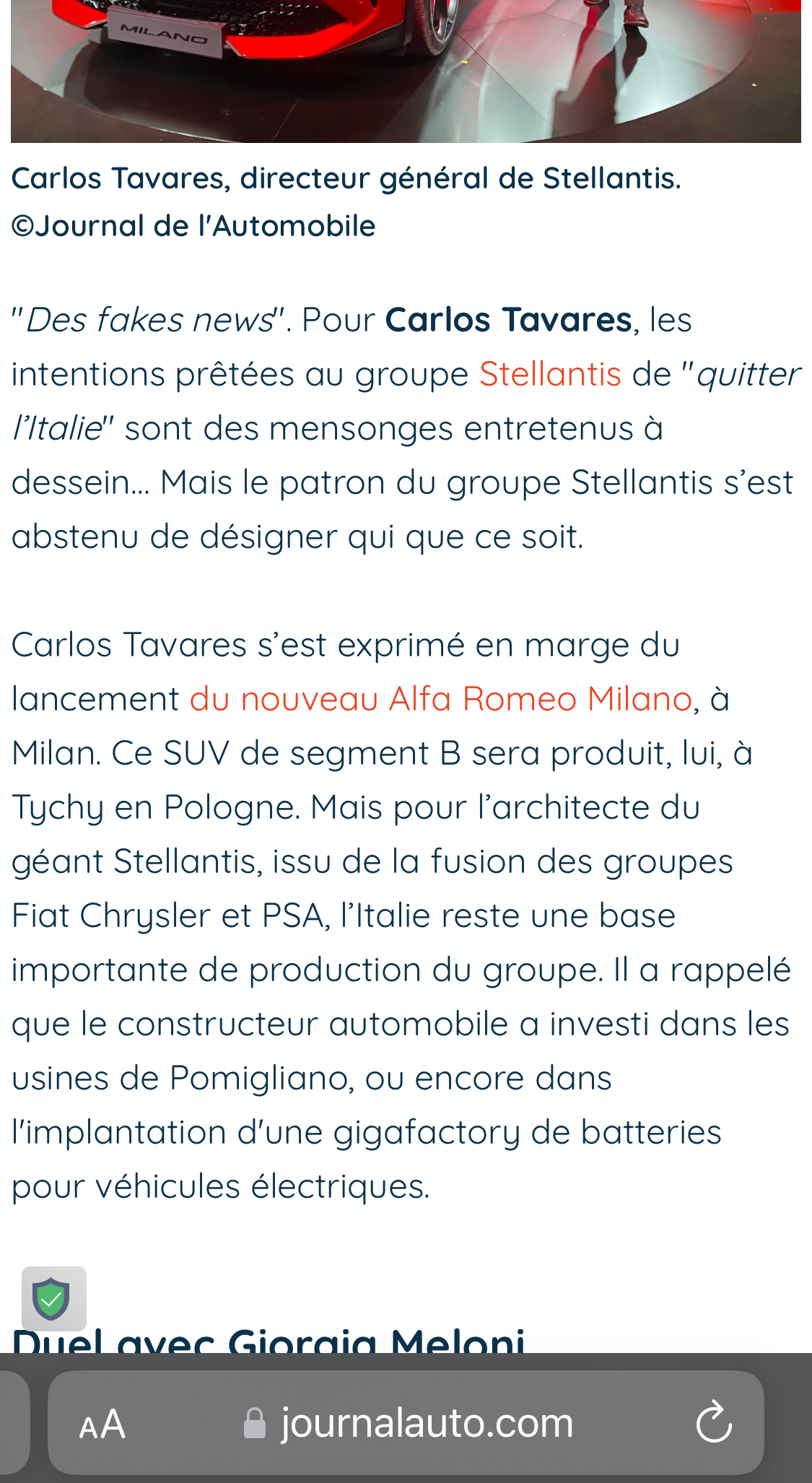 Message de Carlos Tavares lors de la présentation du Milano :roll: