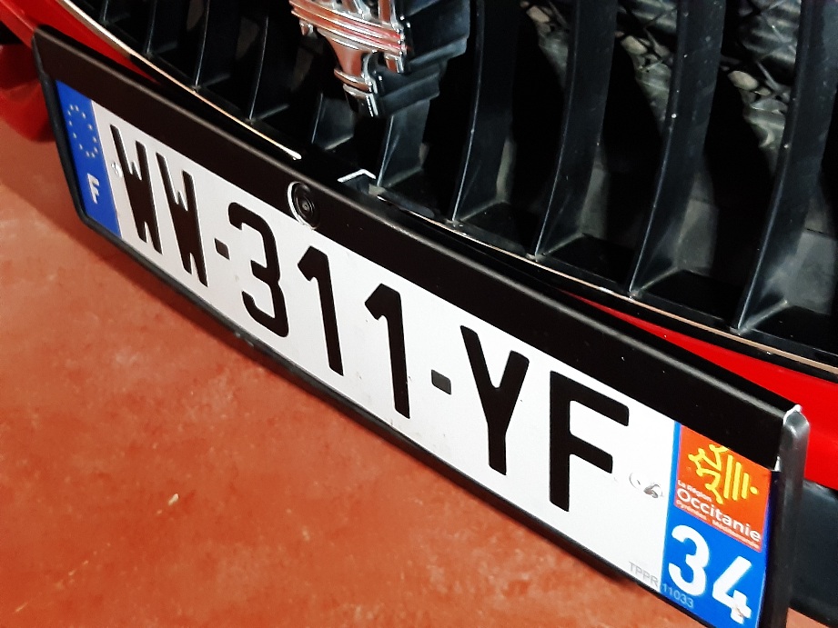 J'ai utilisé un support de plaques retourné afin qu'il serve comme support de caméra, et un profilé (fait maison) en aluminium laqué noir qui a servi de cache caméra. Pour les branchements c'est pas très compliqué car le module carplay/Android auto est prévu avec les entrées nécessaires, mais la aussi je ne me suis pas contenté de faire simple, puisque je voulais pouvoir actionner les caméras quand je le voulais, donc par exemple quand je dois effectuer une manœuvre en marche arrière je peux allumer la caméra avant, ceci a été possible avec l'aide de 2 doubles relais et un bouton de commande basculeur on/off/on que j'ai discrètement dissimulé sous la petite trappe dans le compartiment cendrier, j'en ai d'ailleurs profité pour installer une double prise USB au lieu de l'allume cigare. Voici les vues avant et arrière que j'ai, c'est vraiment très net.