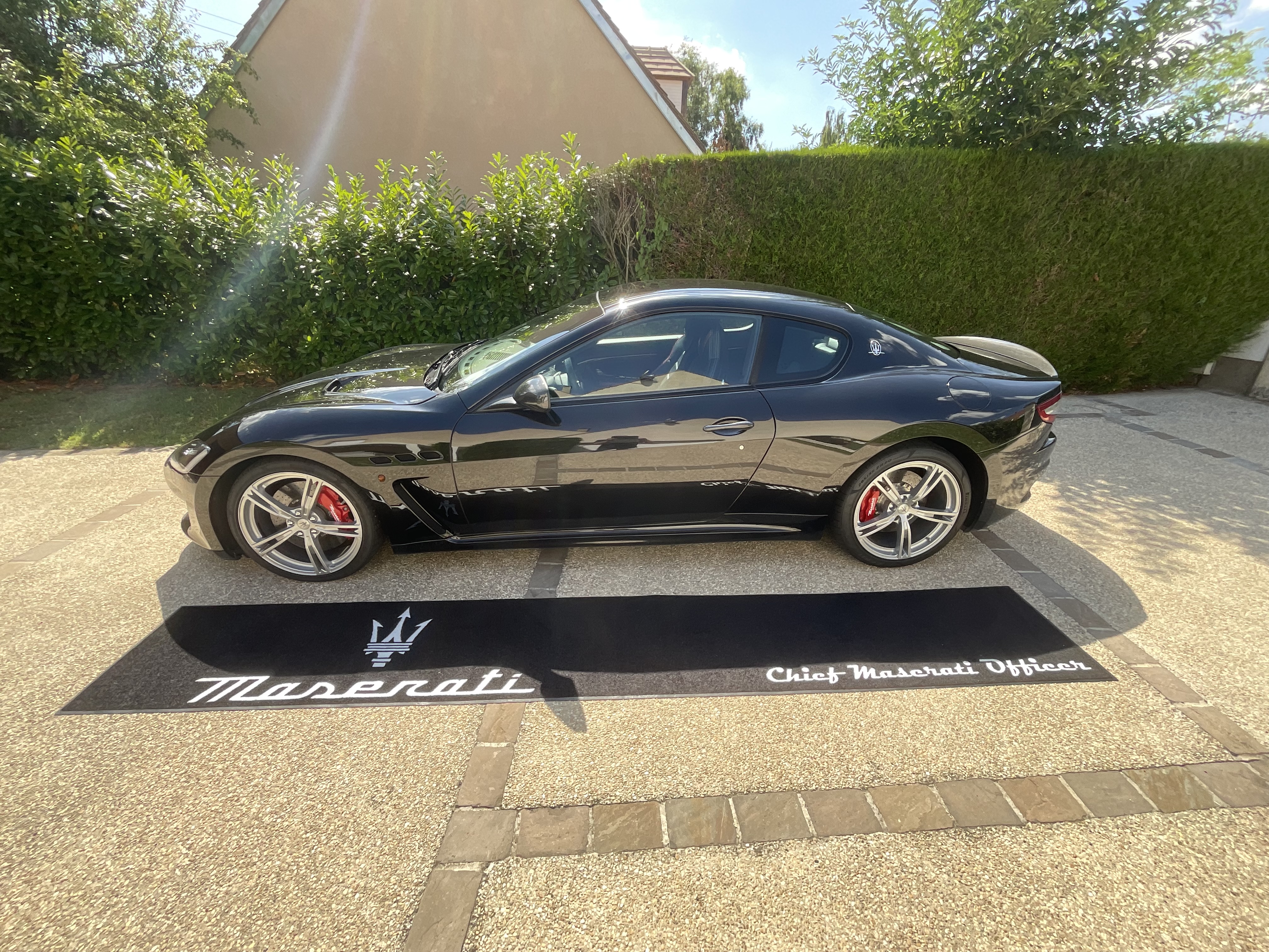 Après des tapis de sols personnalisés, un coffre arrière entièrement recouvert de cuir et une male en cuir a l'effigie de Maserati, sans parler des masques anti covid, les casquettes et tee-shirts, voila leur dernière trouvaille.....Chief Maserati Officer...