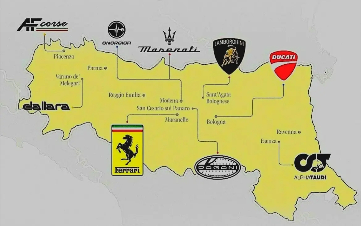 La Motor Valley, par analogie avec la Silicon Valley, c’est la « Terra dei Motori » en italien, une formidable concentration de constructeurs auto et moto de très haut niveau en Emilia Romagna. Dans cette terre, rien qu’en démarrant une tondeuse à gazon thermique, les hommes et même certaines femmes pleurent d’émotion (je ne suis même pas certain d’exagérer). « La population a de l’essence dans les veines », comme disait Roberta Bicocchi qui a travaillé chez Maserati aux relations avec les clubs et qui est la sœur du pilote d’essai Loris Bicocchi (Lamborghini , Bugatti!.