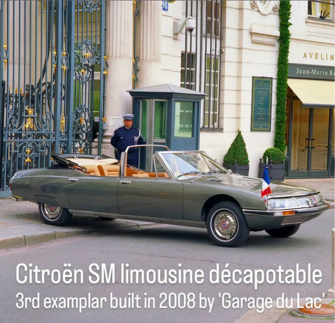 La SM présidentielle a été réalisée par les établissements Chapron en 1972 en deux exemplaires pour véhiculer la reine Elisabeth II d’Angleterre en visite en France. Ces deux autos ont transporté pendant plus de 20 ans les présidents français Georges Pompidou, Valery Giscard d’Estaing, François Mitterrand et Jacques Chirac, mais aussi le Pape Jean-Paul II et certaines têtes couronnées en visite à Paris. Elles sont toujours la propriété de l’Etat Français et je mettrai donc dans mon musée virtuel une réplique absolument incroyable de fidélité, réalisée en Suisse en 2008 et validée par la famille Chapron.