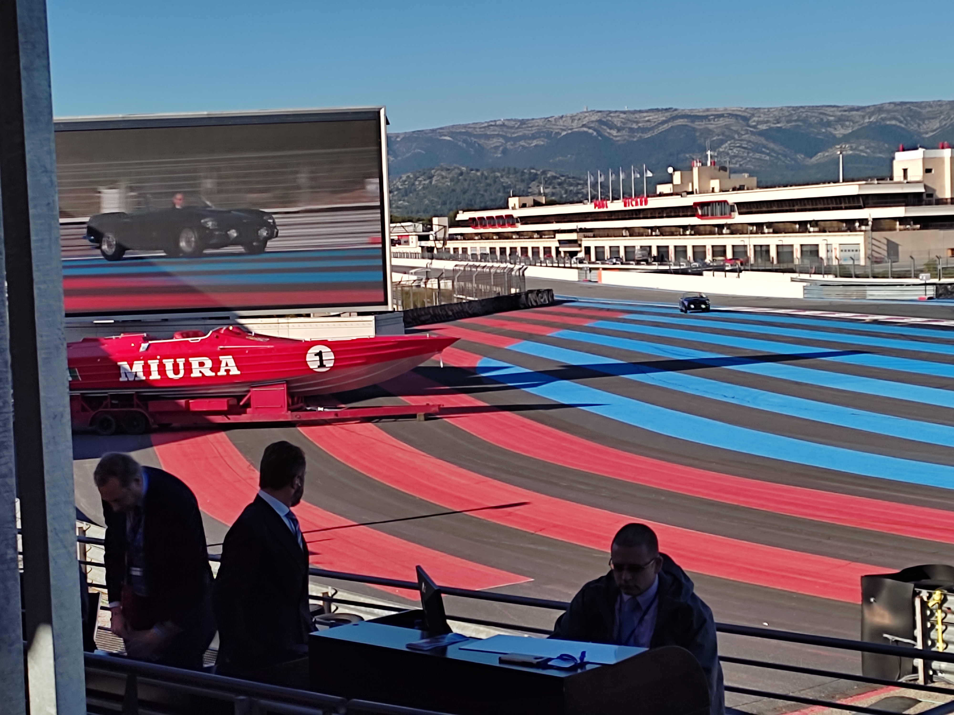 Une surprise de taille pour moi a été la mise en scène avec l'arrivée sur le circuit des voitures les plus en vue, avec en parallèle filmage par drone et retransmission sur grand écran, comme par exemple pour le spyder 250, venant s'aligner devant les tribunes: