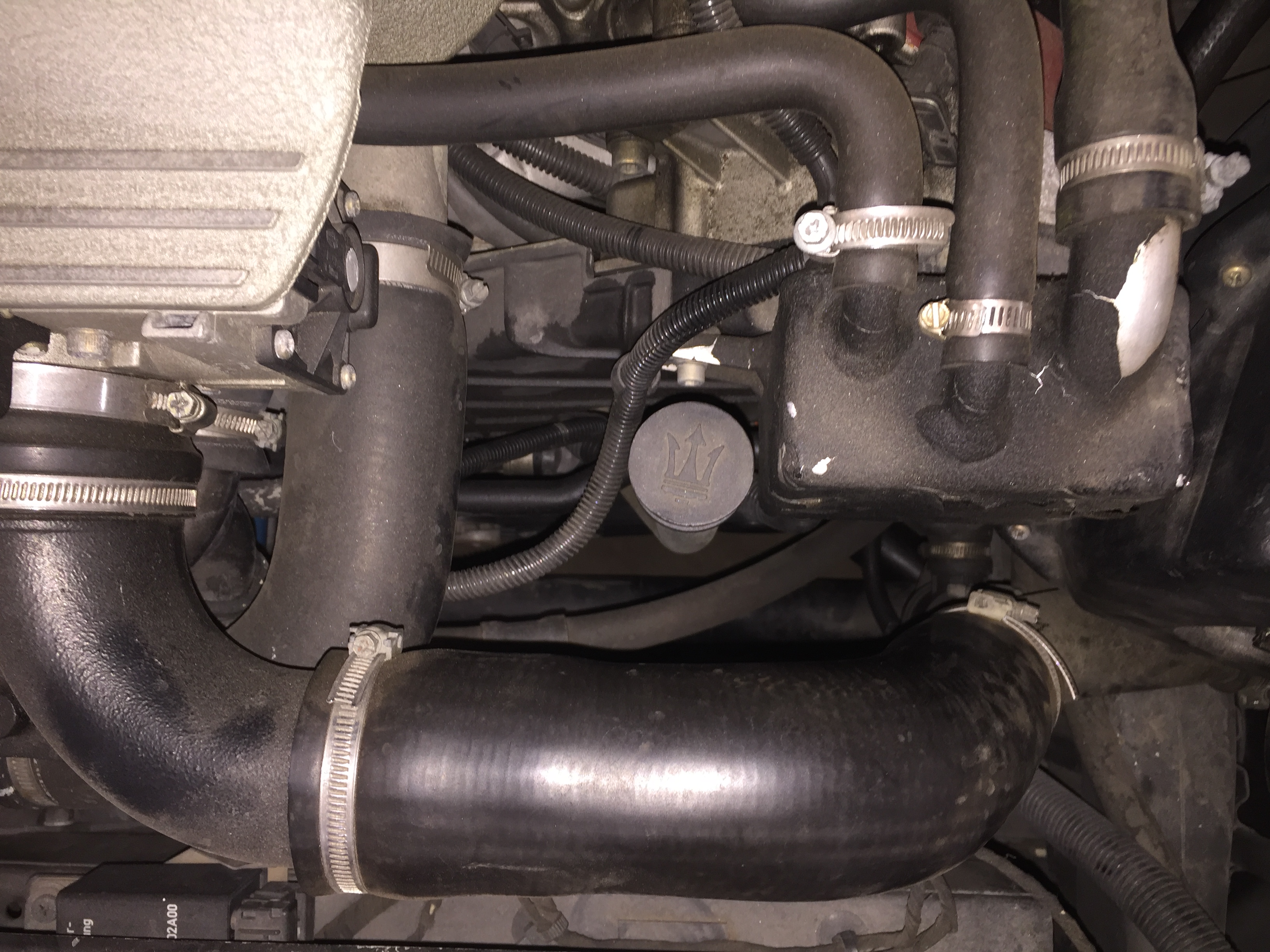 Et la cote conducteur (le pire) a cause du filtre a huile que ces cons de chez Maserati ne pouvait pas monter 1cm plus loin du passage. Du coup il gene la durite (et moi par ricochet).