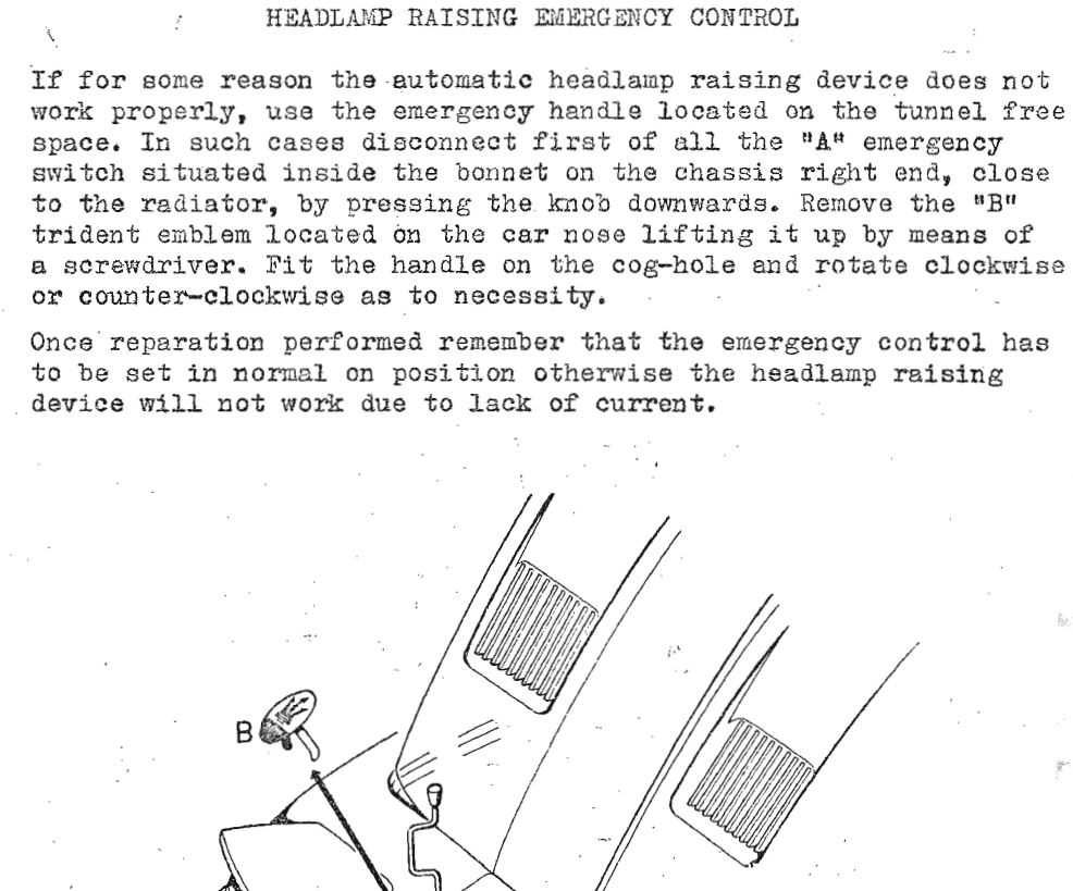 je continue ma découverte de la voiture, en regardant comment fonctionne le mecanisme de secours d'ouverture des phares (lorsque la fonction electrico - pneumatique - est en panne )