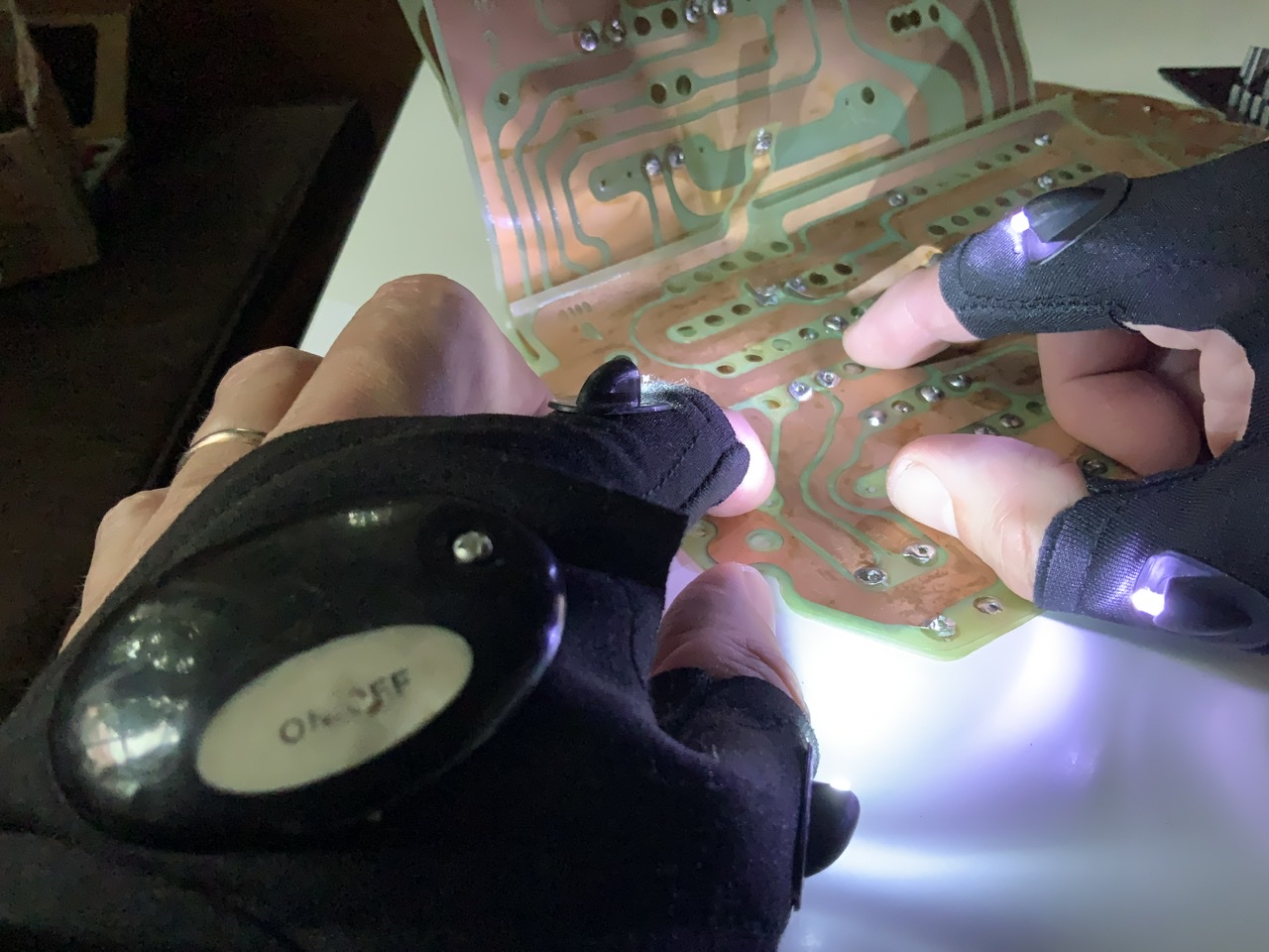 Plus ou moins pratiques dans le sens où ça éclaire les choses fines / petites / délicates qu'on manipule, mais d'un autre côté, les gants ne facilitent pas forcément le passage dans les endroits exigus. Perso, j'ai des pis de vache à la place des doigts :lol: donc ça passe rarement dans les endroits limités, alors si j'ajoute de l'épaisseur, "ça passe pu" :roll: