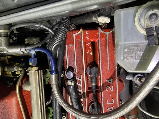 Deuxième soucis, depuis que j’ai la voiture j’ai de l’huile qui s’accumule au niveau du cache culbuteurs gauche (côté conducteur) :