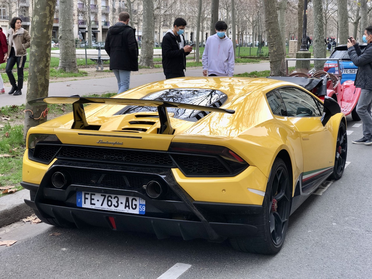 Voilà le chien qui regarde passer l'Alfa spider et une Lambo