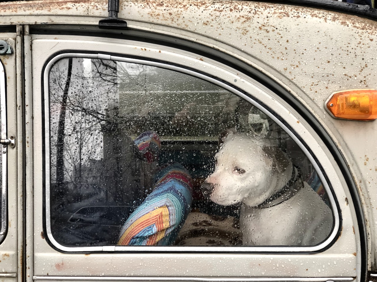 Voilà le chien qui regarde passer l'Alfa spider et une Lambo ;)