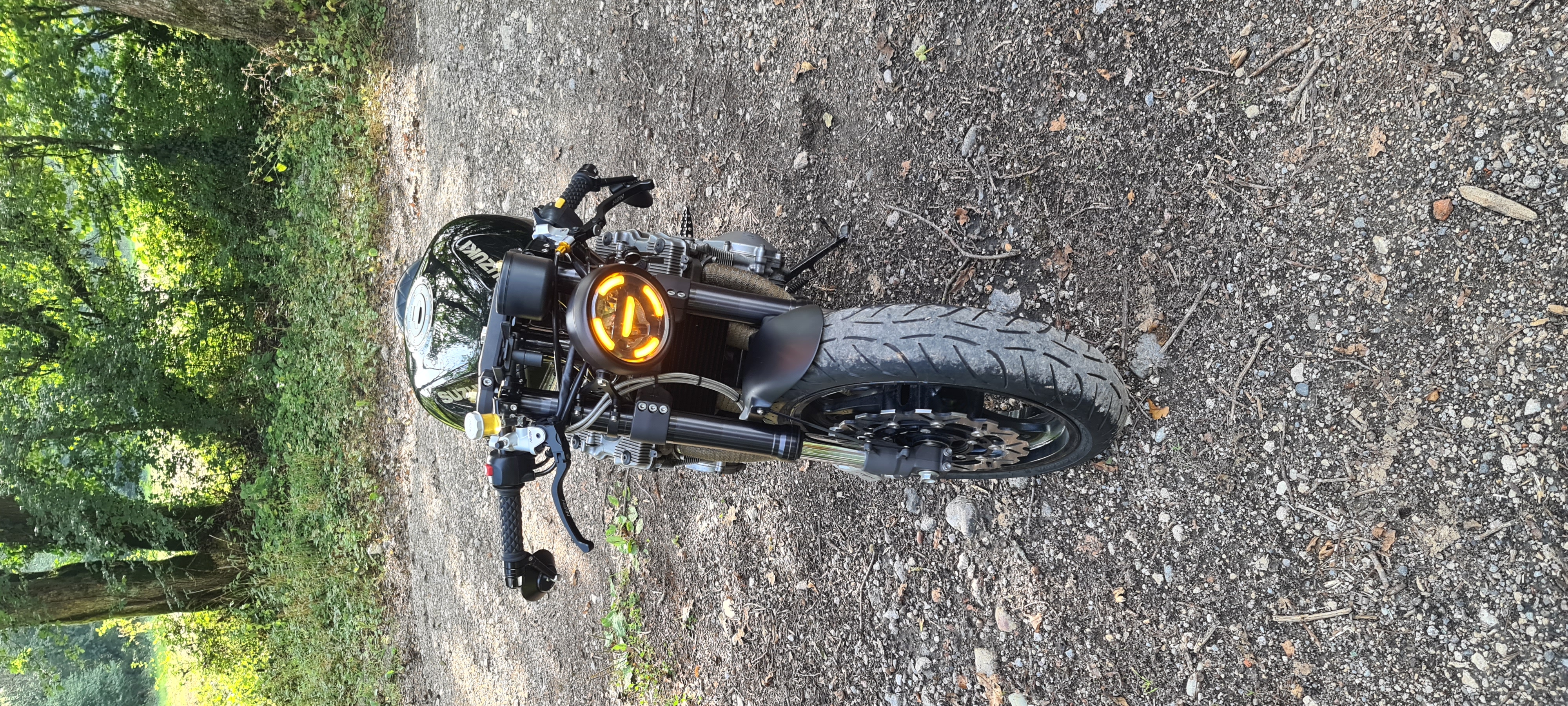 -La plus ancienne ;R90S de 1976 intégralement restaurée pour ses 40 ans: -Marque française hélas disparue; Voxan café racer de 2003 , restaurée en 2015:
