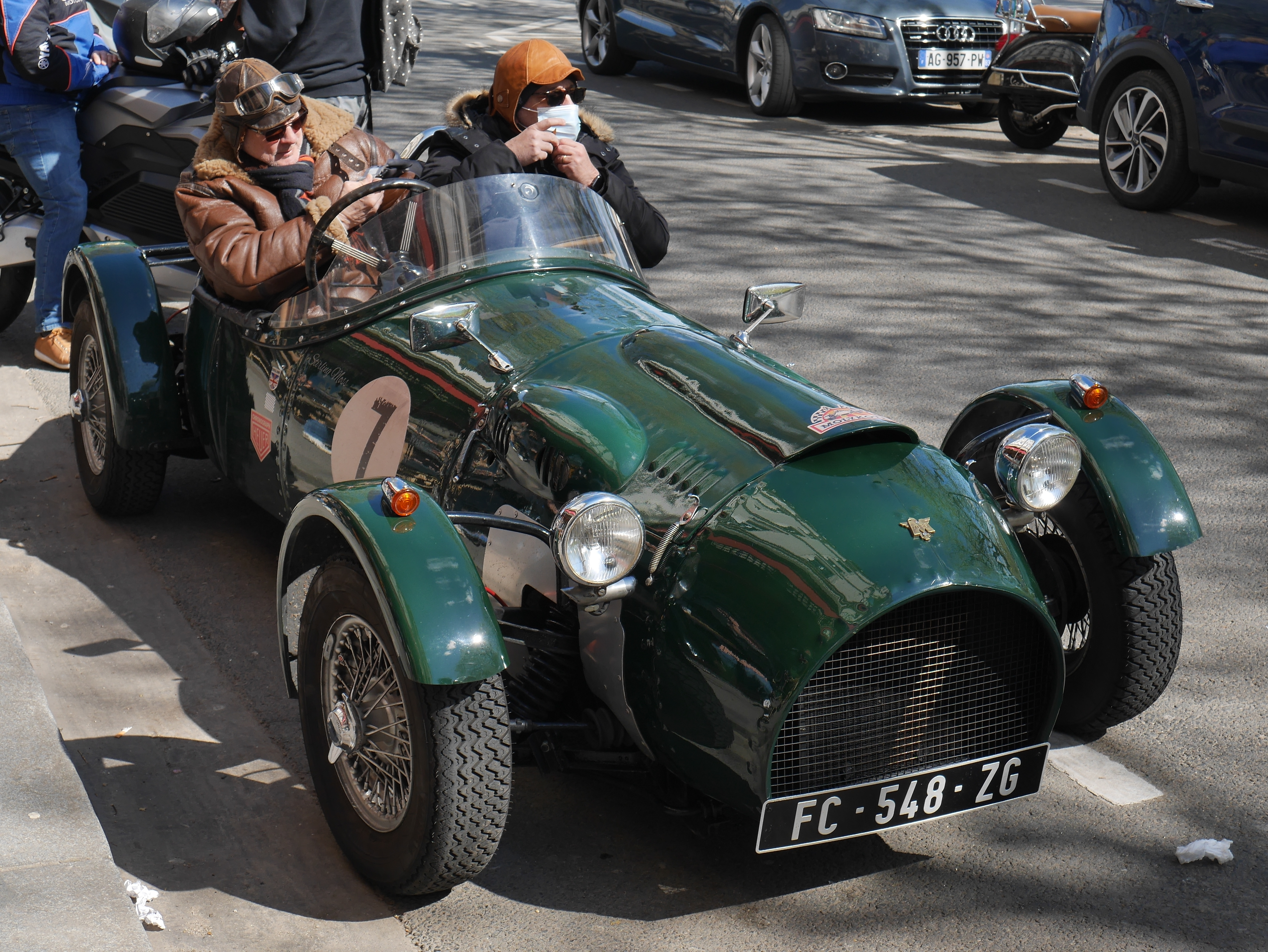 Le gros cabriolet bleu à 5 places (ou du moins 5 passagers) est une Silurian, kit car évocation des prestigieuses avant guerre,