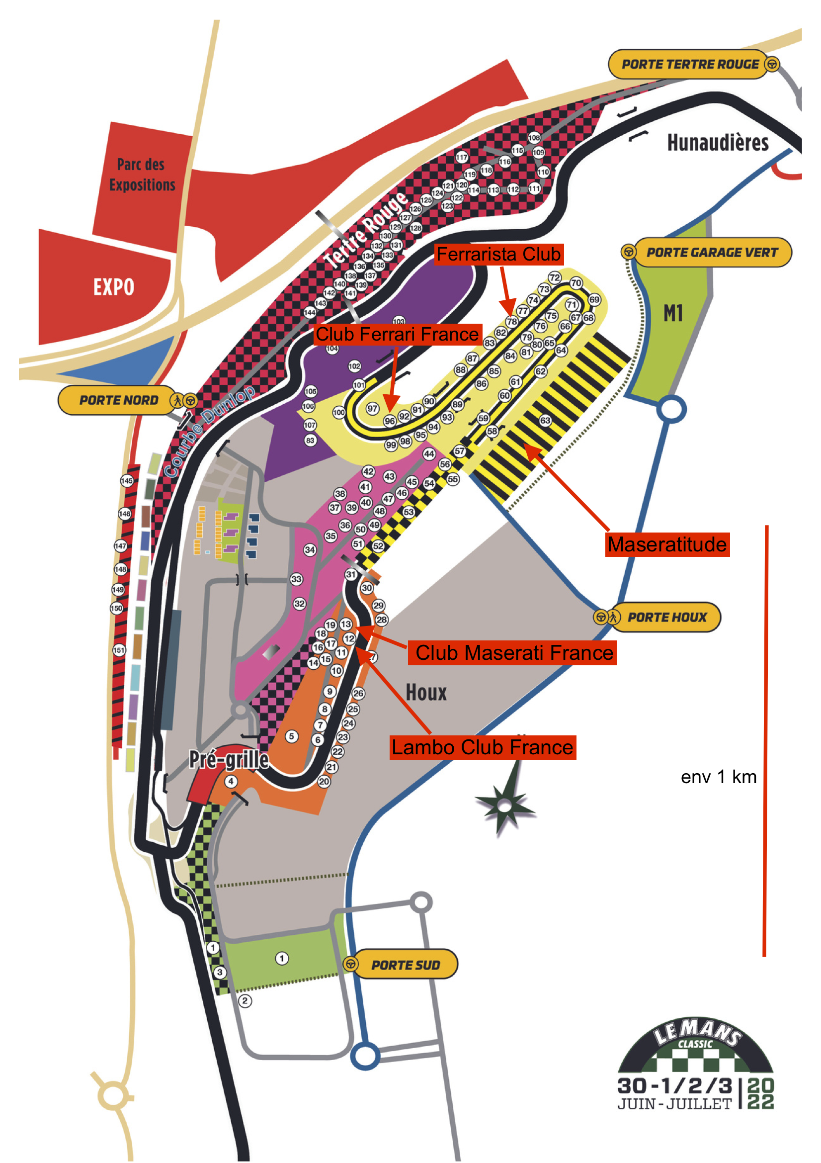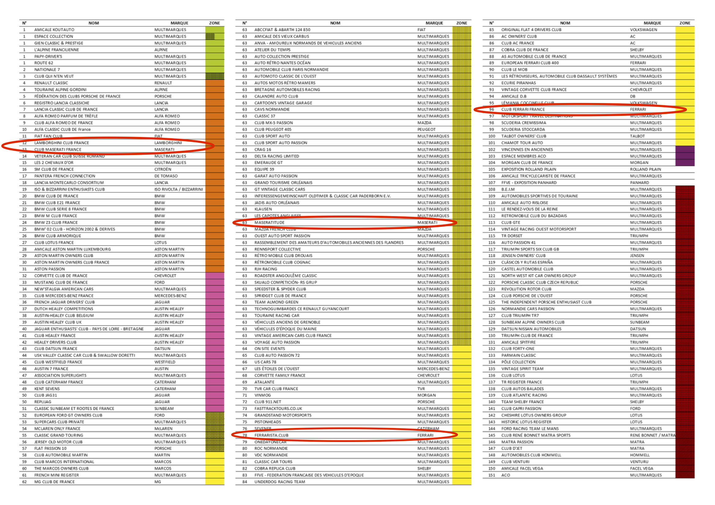 Plan géné: Liste clubs: spécimens badges: J’ignore si dans la zone 63 (jaune/noir) ou se trouvera Maseratitude, les parkings clubs sont délimités... ou si c’est au petit bonheur.