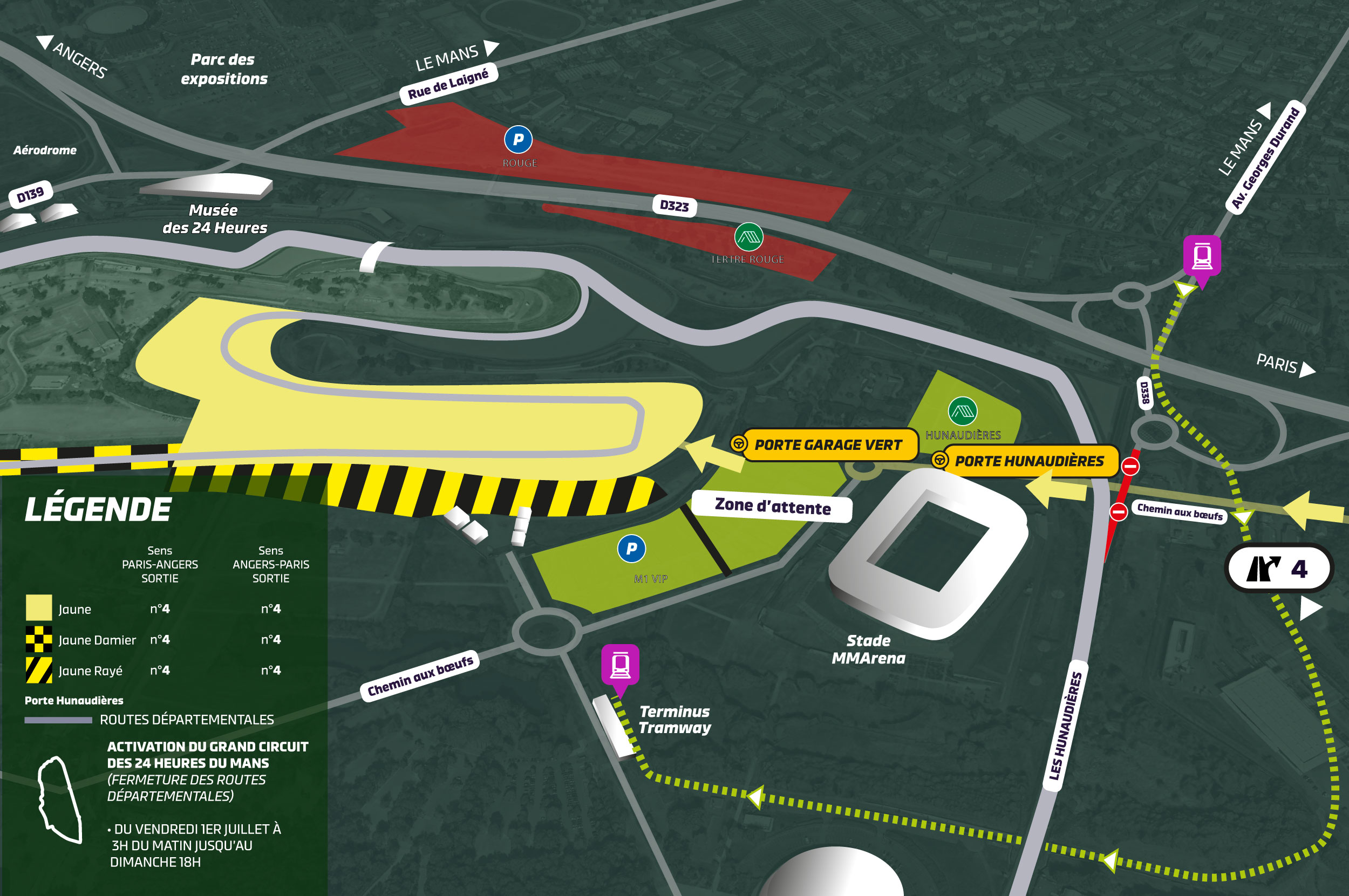 Plan géné: entrée porte garage vert: Je vous enverrai infos+plans avec les passes (toujours pas reçus: fin de semaine ou début prochaine)