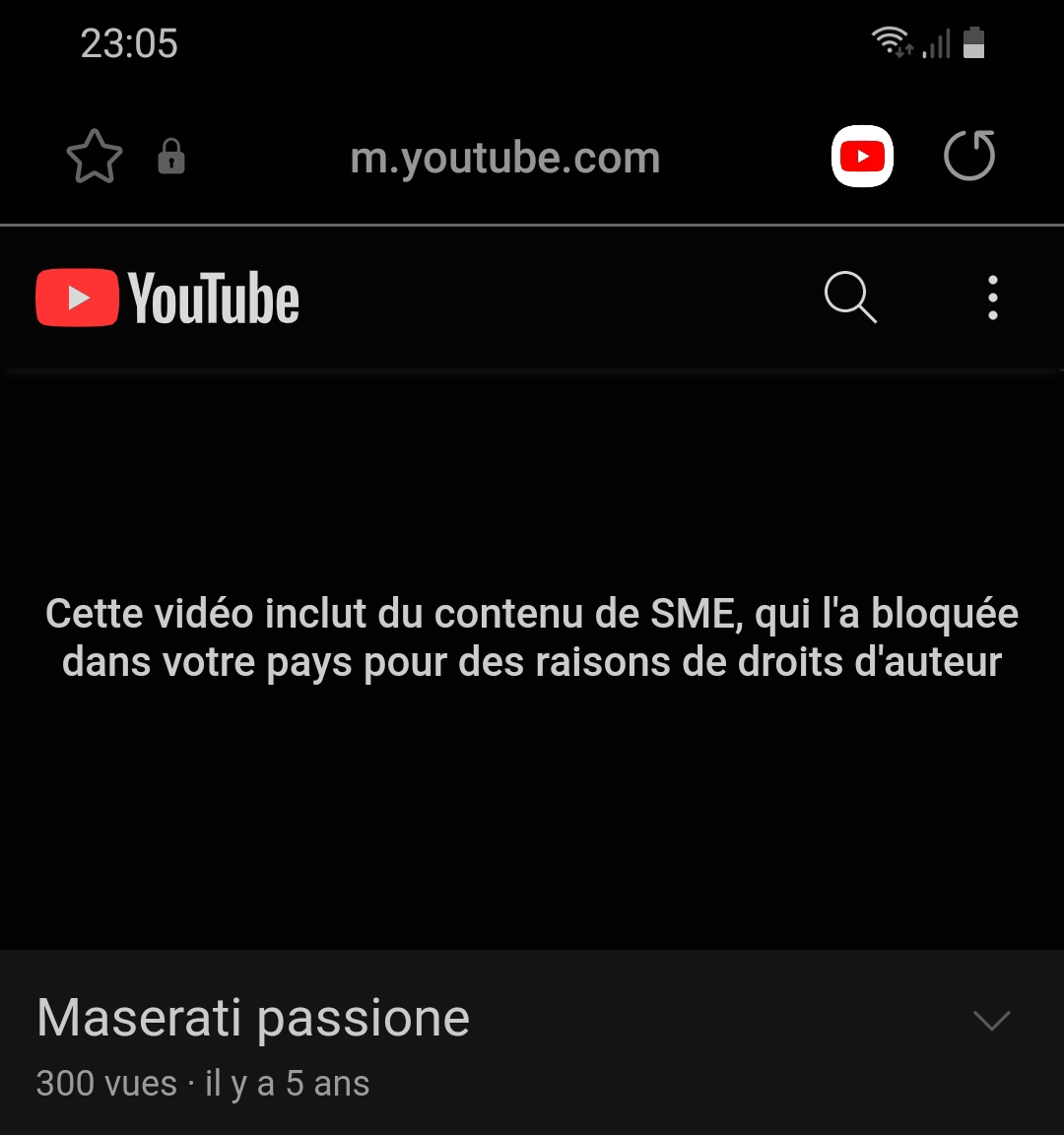 Ah mince, ça l'avait déjà fait il y a 2 ans : ce sont les droits de la musique d'Ennio Morricone. Quand il y a trop de vues en peu de temps, Youtube bloque si j'ai bien compris. Faut pas visualiser pendant quelques temps puis ça remarche ! Désolé
