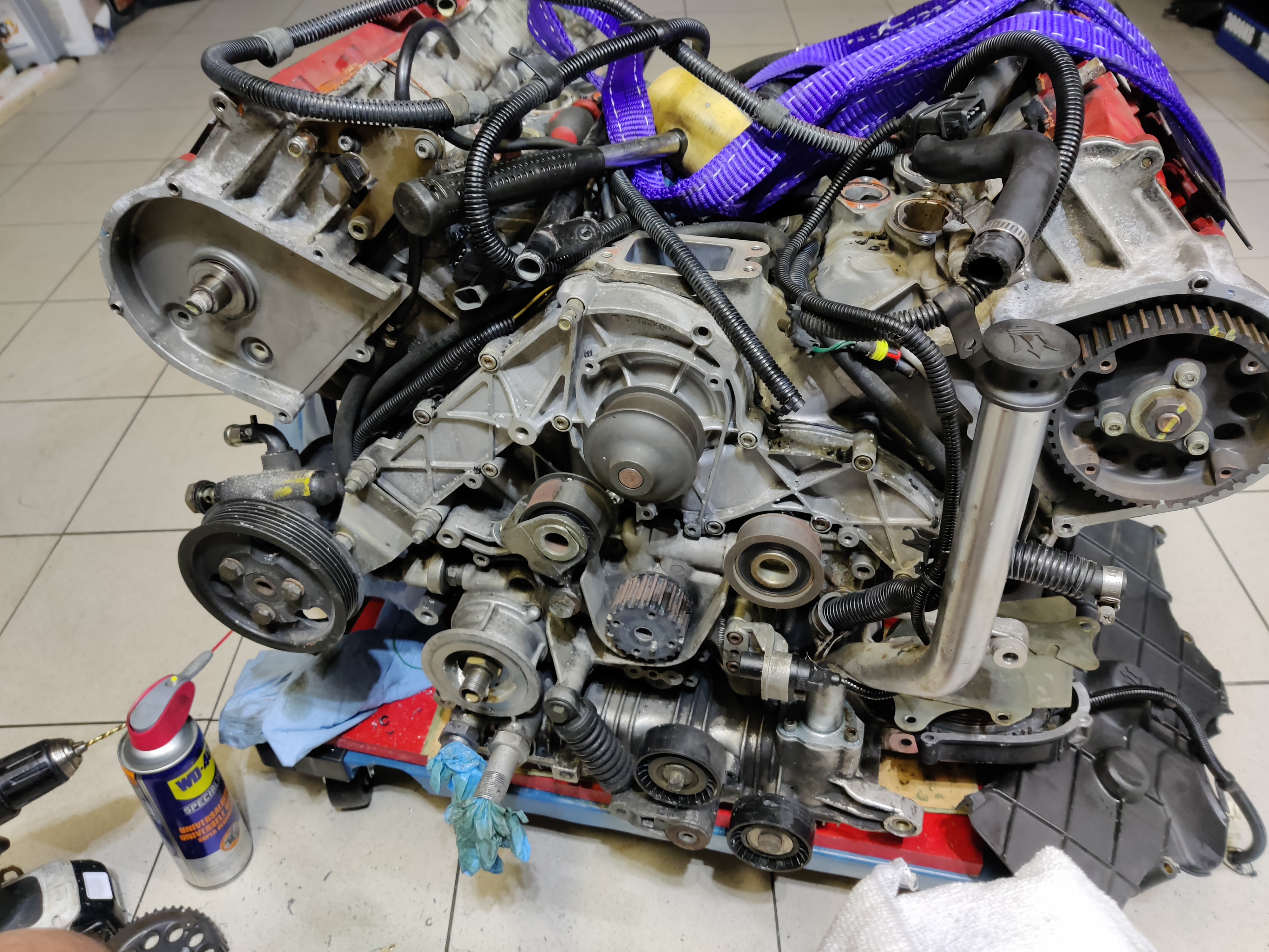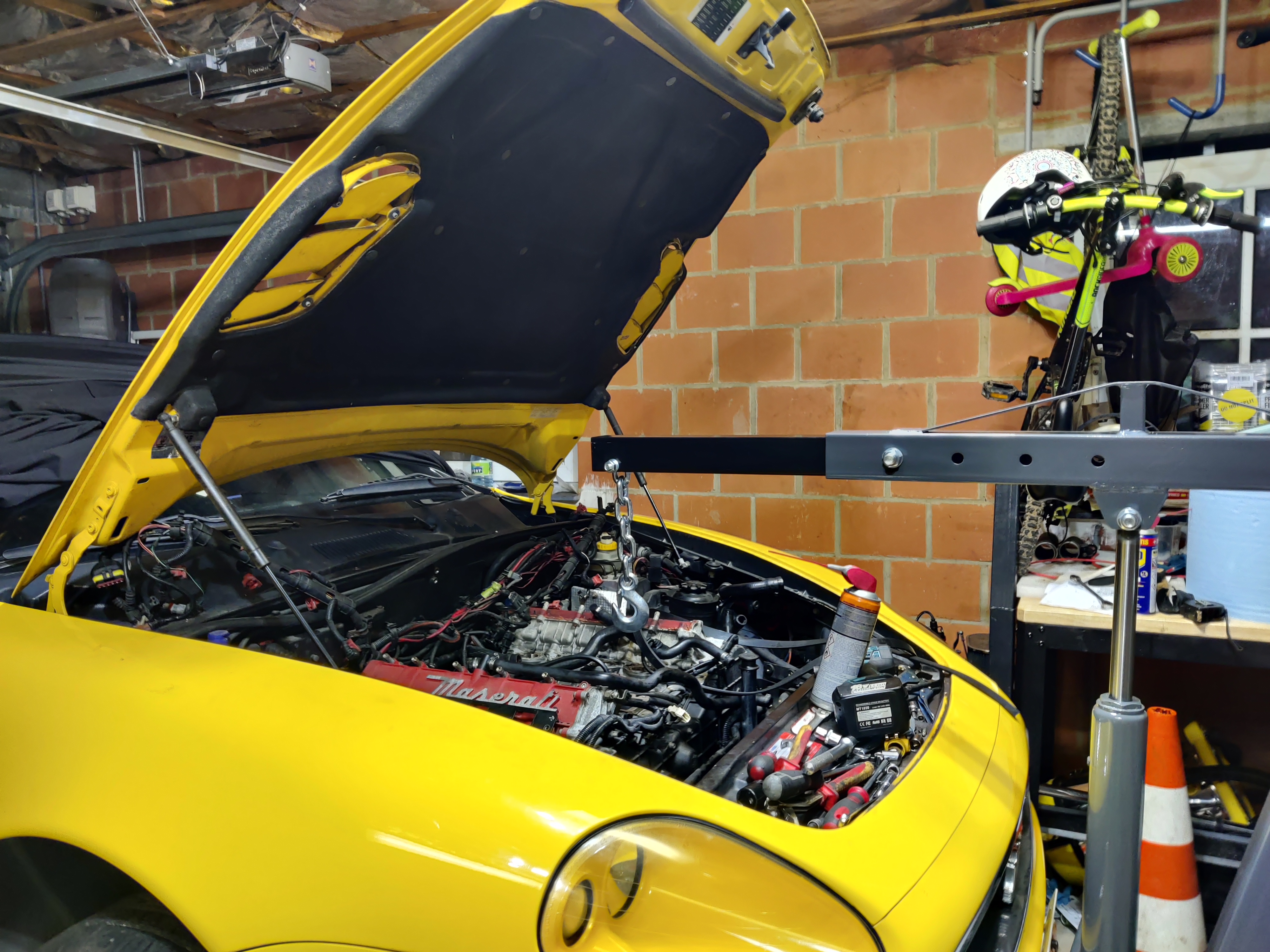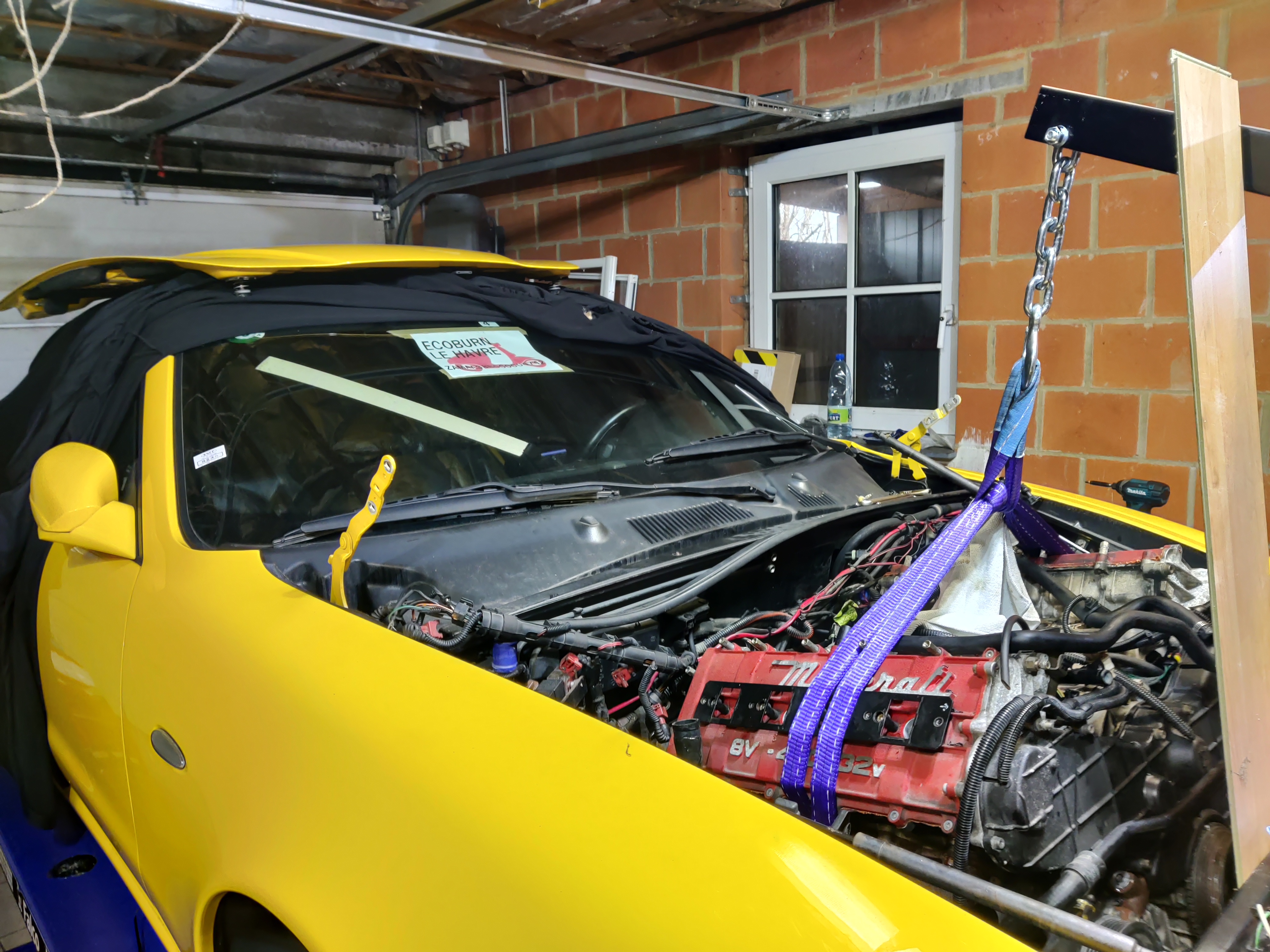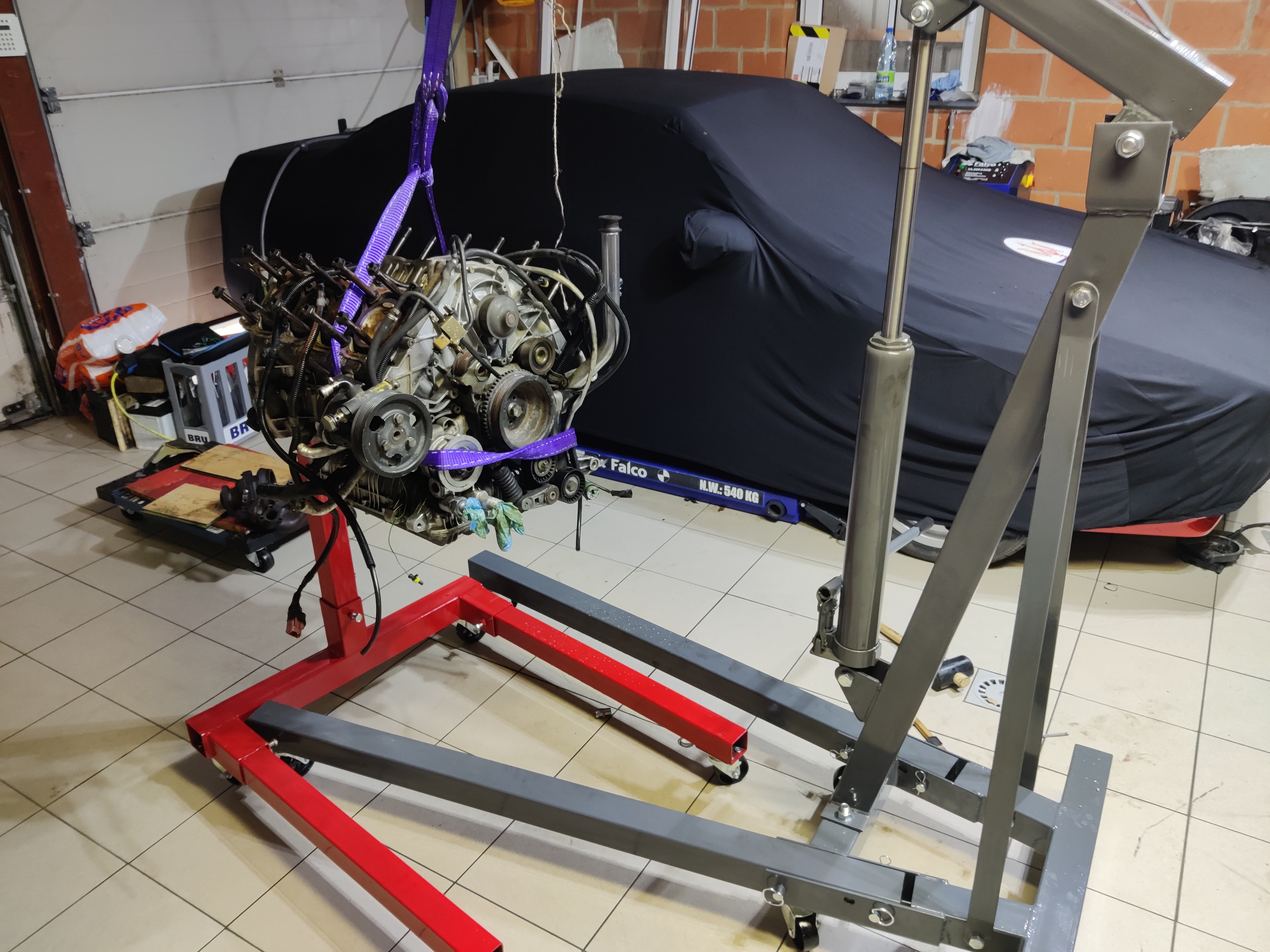 Donc comme prévu, il va falloir enlever le moteur (parce que dans la 3200 on ne peut pas déculasser sans retirer le moteur, ou alors très difficilement). Au vu de la galère sans fin pour enlever les collecteurs d'échappement, si vous deviez passer par là, un conseil, ne vous emmerdez pas, sortez le moteur. La grue est là, ça sert à ça.