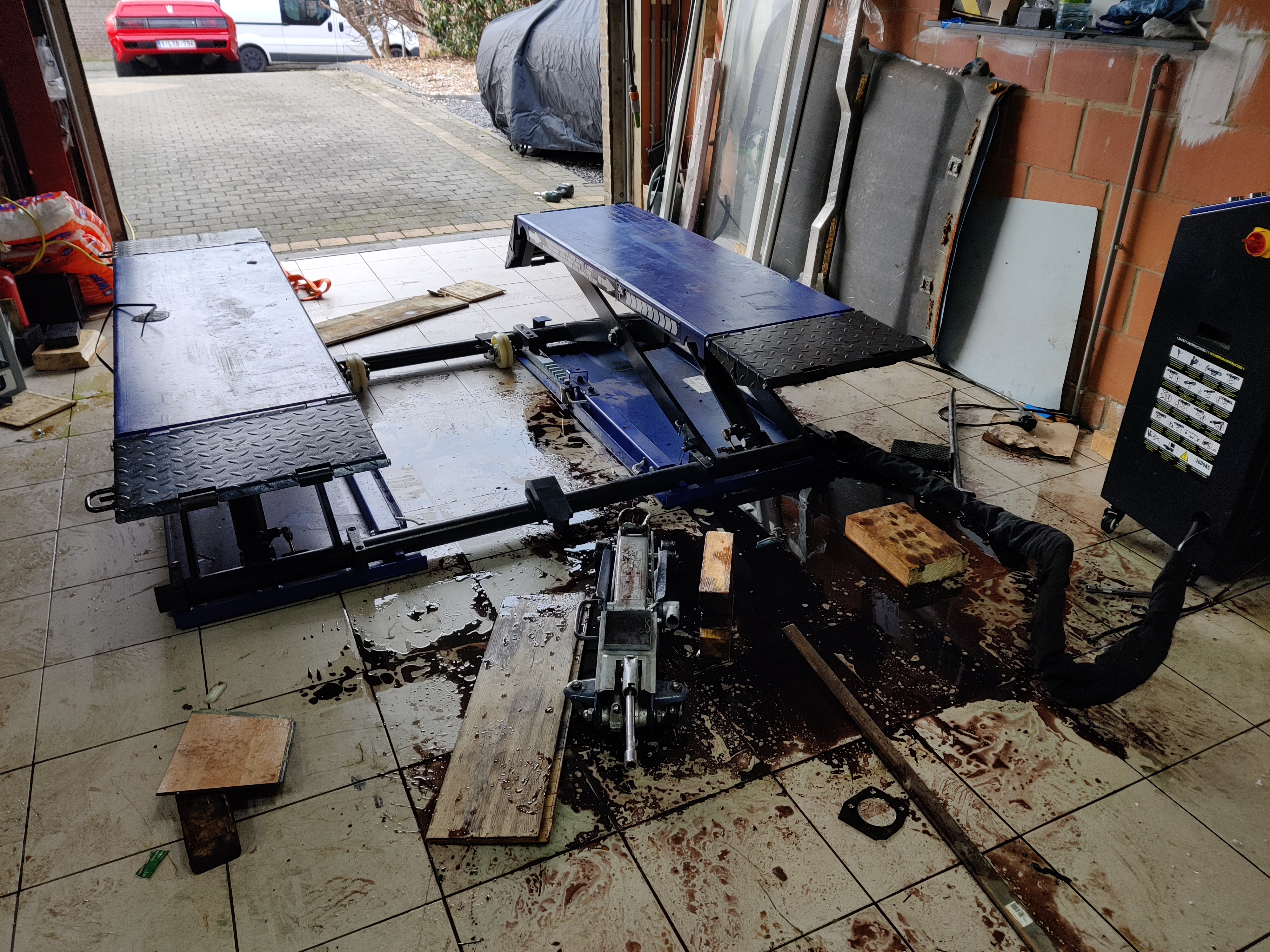Et donc c'est le carnage, le sol est recouvert d'huile de boite, de LDR, et de divers fluides provenant des radiateurs et d'autres orifices non identifiés.