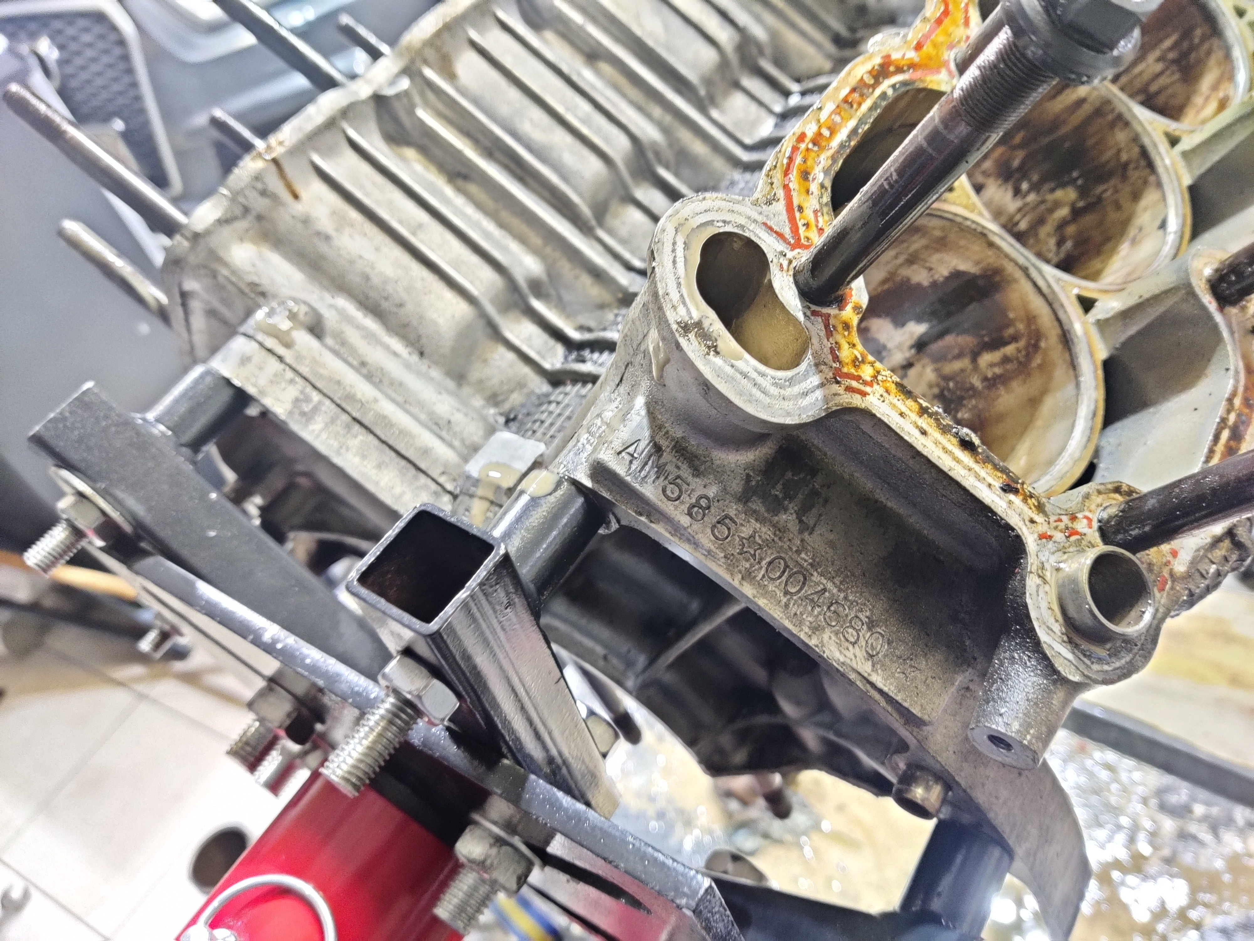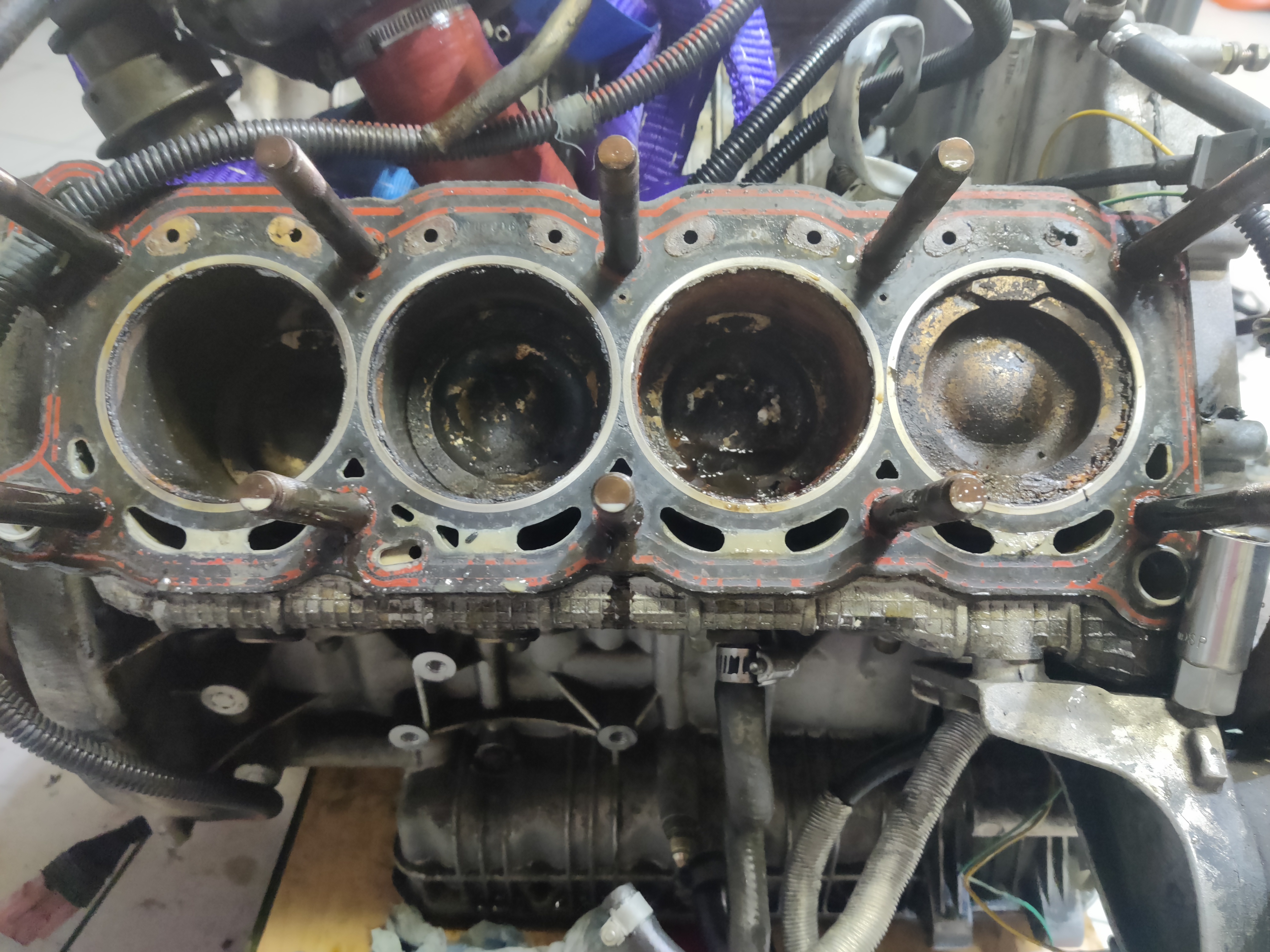 Quand je vous parlais de carnage. Vous me coryez ou pas, mais ça m'a pris plus de temps pour laver le garage que pour sortir le moteur.