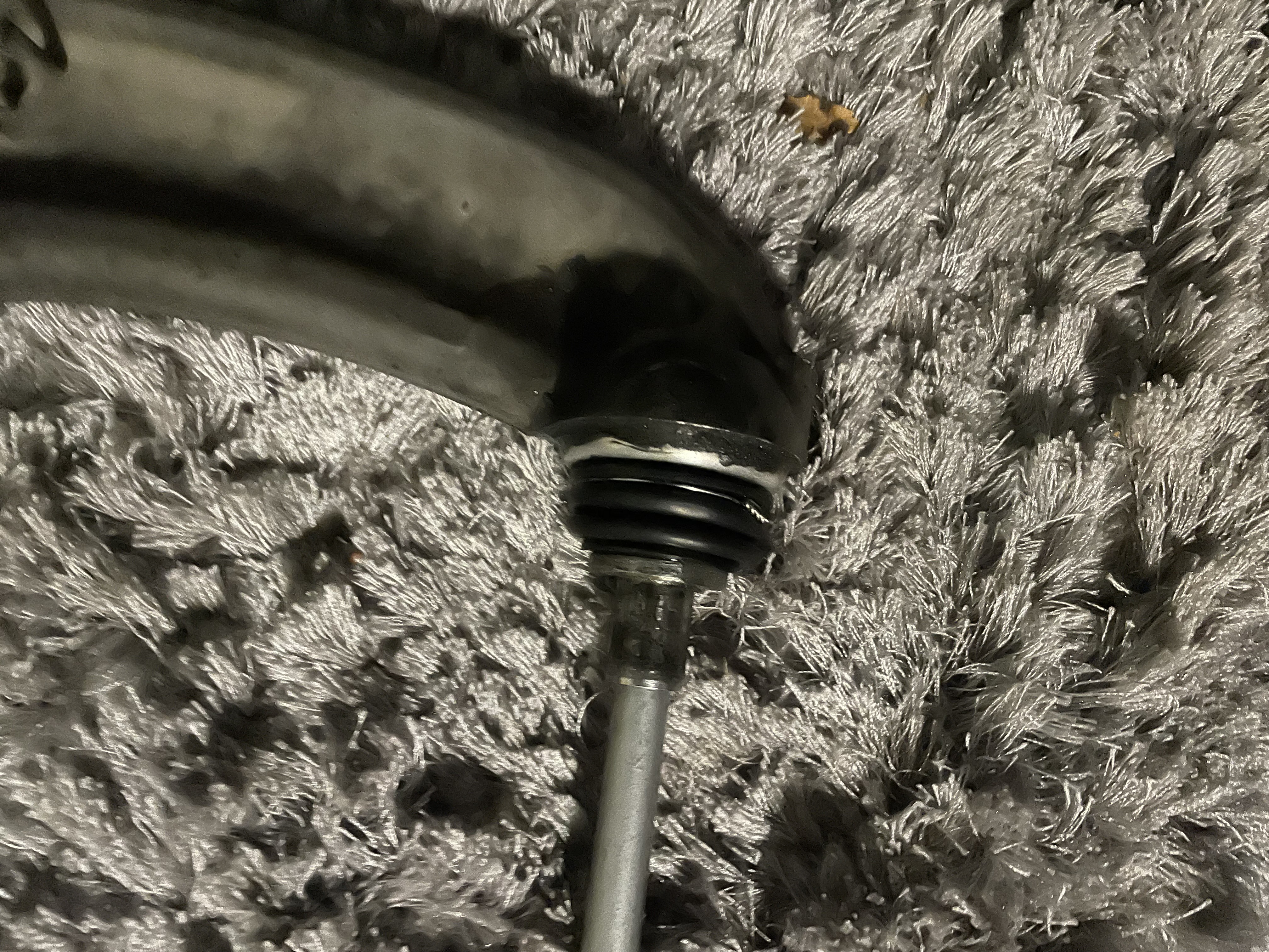 J'ai déposé le triangle inférieur ( vu que je n'arrivais pas non plus à retirer le goujon (axe de la rotule) et j'ai changé le cache poussière.