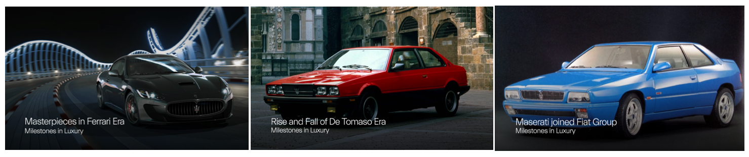 Au Japon, Maserati publie cependant une série d'articles historiques, "Milestones in Luxury" diffusés sur le site maserati.jp ainsi que par email aux clients enregistrés sur la liste de diffusion de la marque.