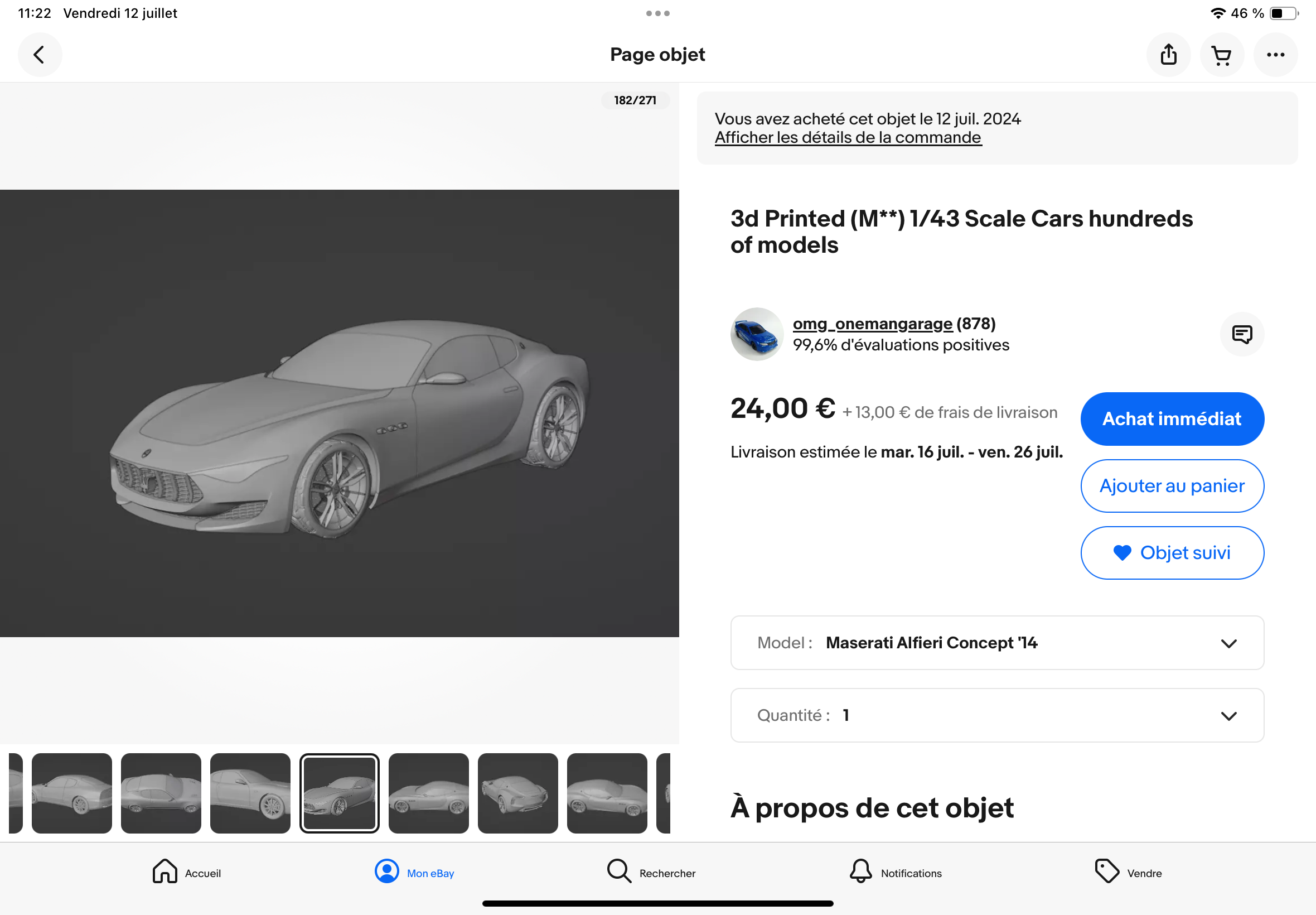 Beaucoup plus que certaines 1/43 ! La boîte est un peu abimée, donc j'ai négocié un peu.