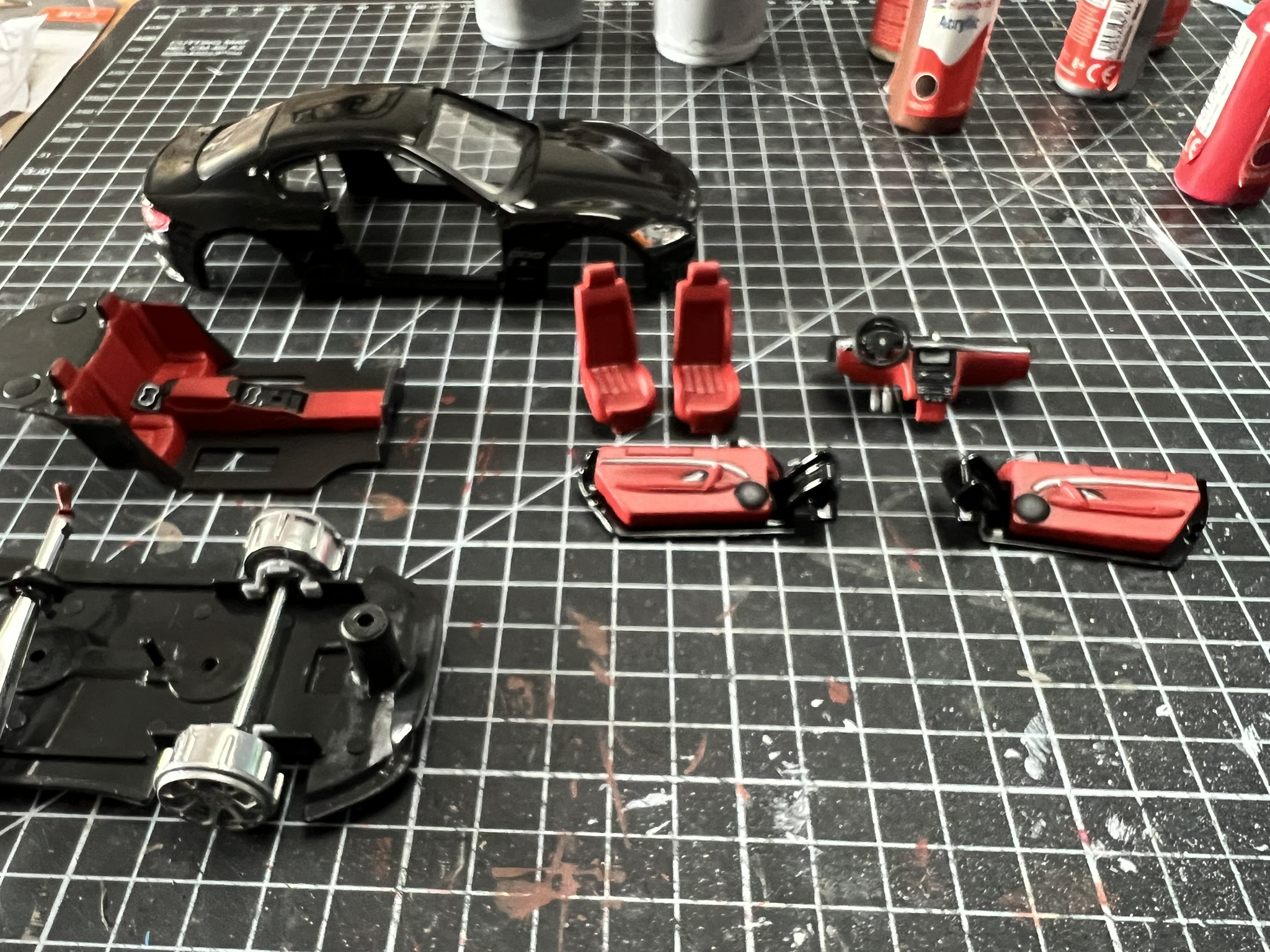 Cependant, j'ai là aussi quelques détails à améliorer à l'intérieur en prévision, sur les portes, le tableau de bord, les sièges et la console centrale.