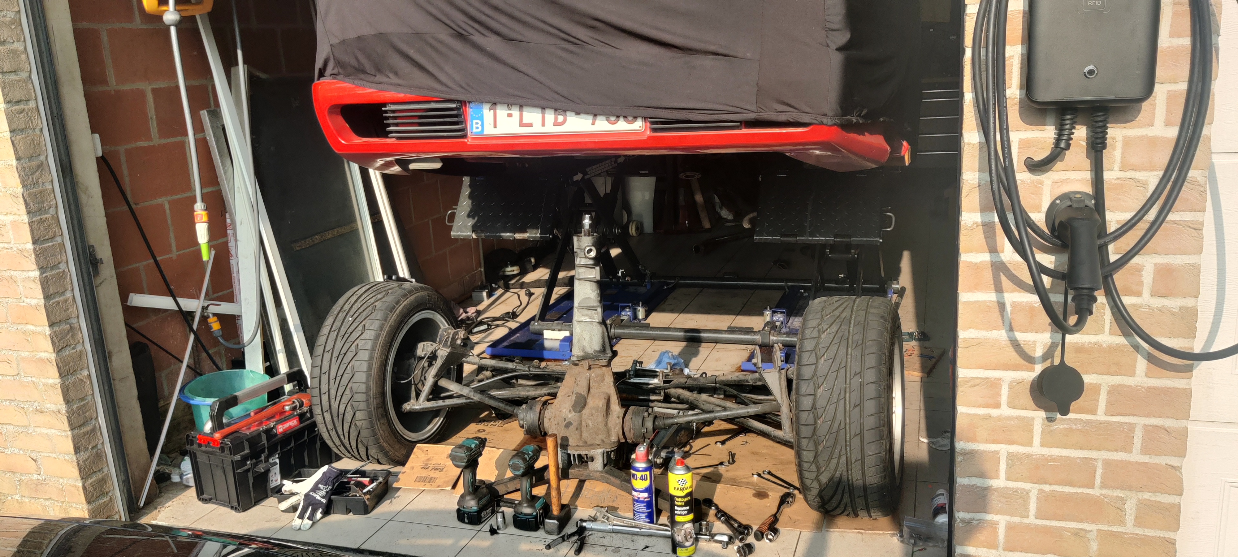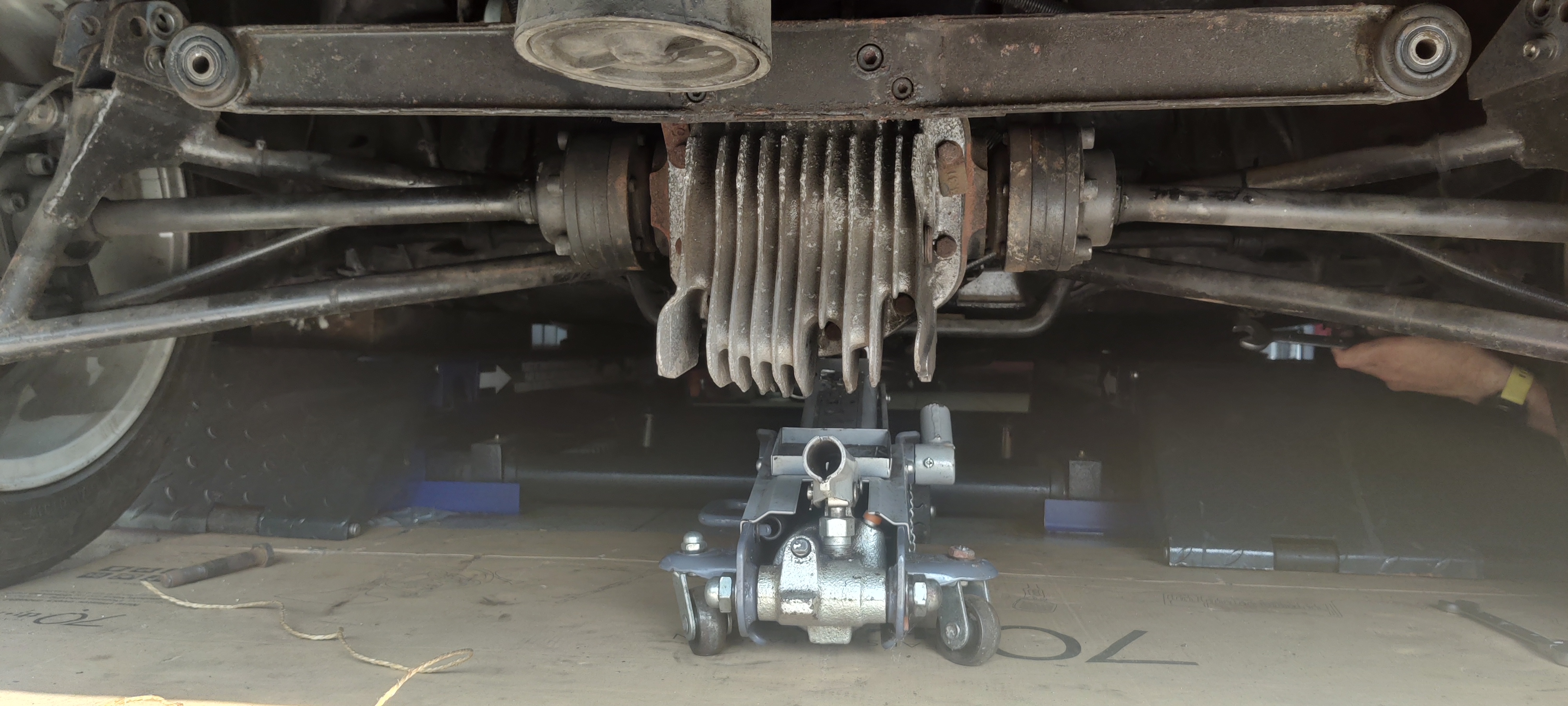 Le nez (j'appelle comme cela la partie à l'avant du différentiel) est boulonné à la transverse du berceau et visuellement, ce ne sera pas possible de déffaire les boulons et sortir ce nez avec la place disponible.